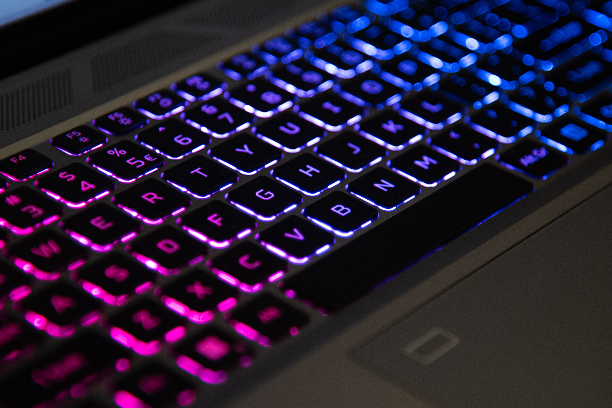 Підсвічування клавіатури має три зони, керується через Predator Sense, але якщо не встановити програму чи просто при старті лептопа підсвітка буде статичного бірюзового кольору.