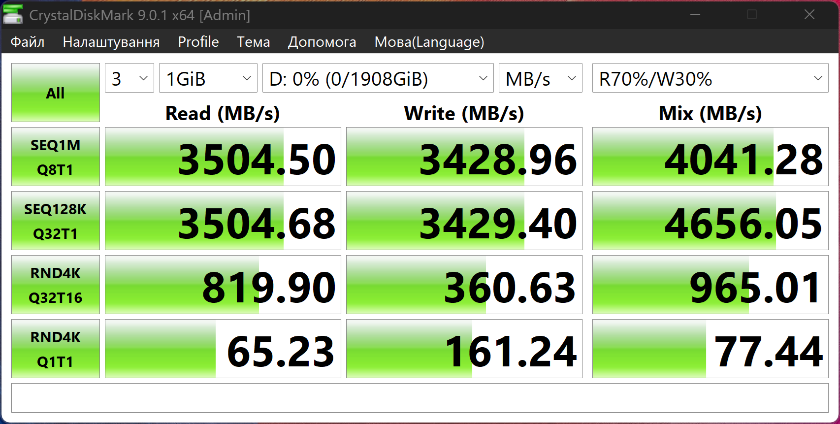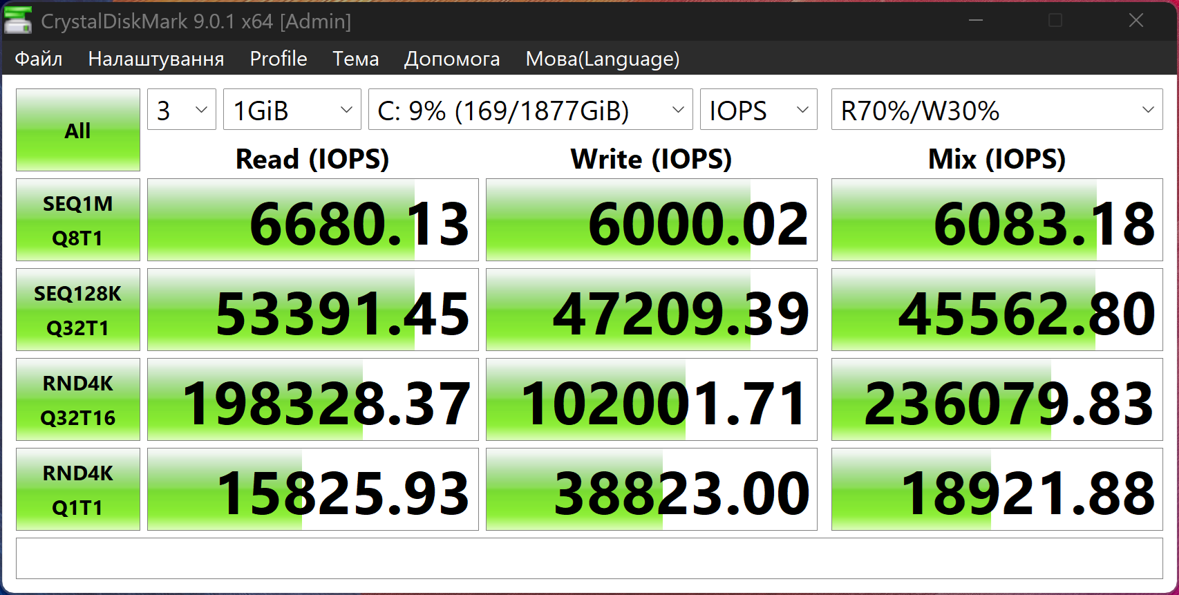 Тестування відбувалося лише на диску C, як найшвидшому.
