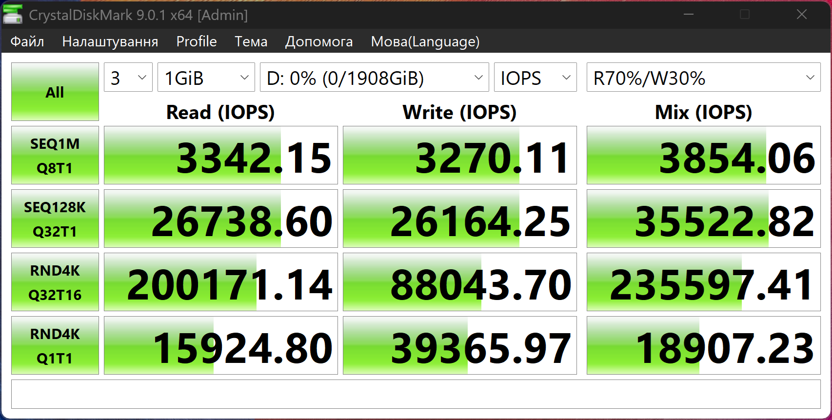 Тестування відбувалося у режимі Performance.