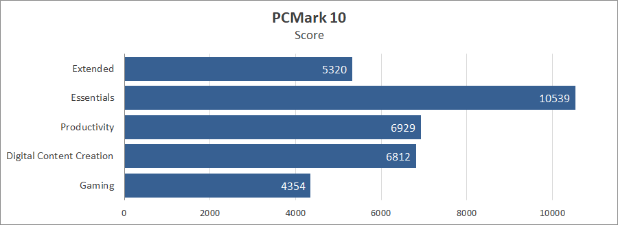 На графіку наведено загальний результат розширеного тесту та результати окремих груп тестів у складі цього бенчмарку.