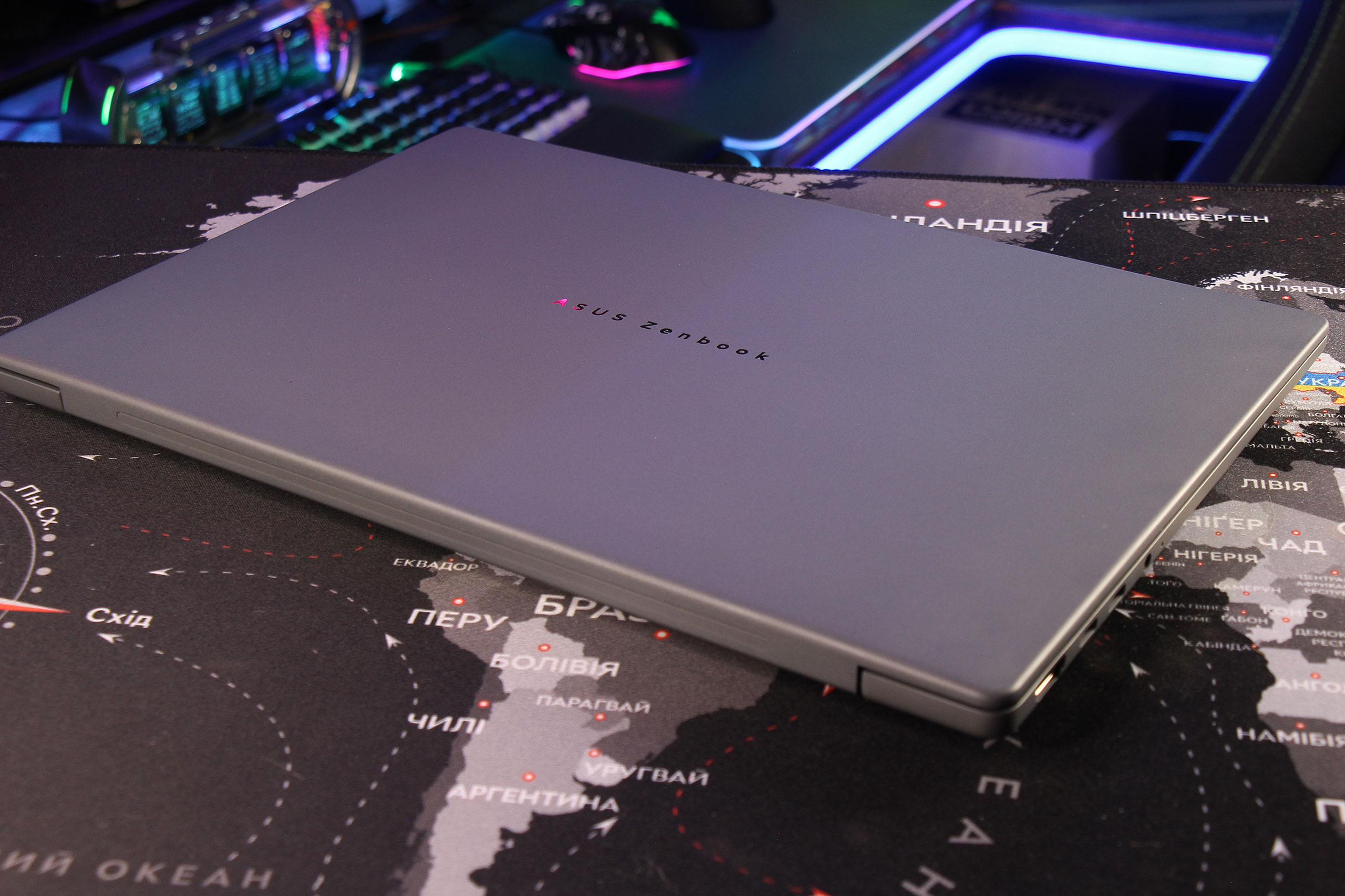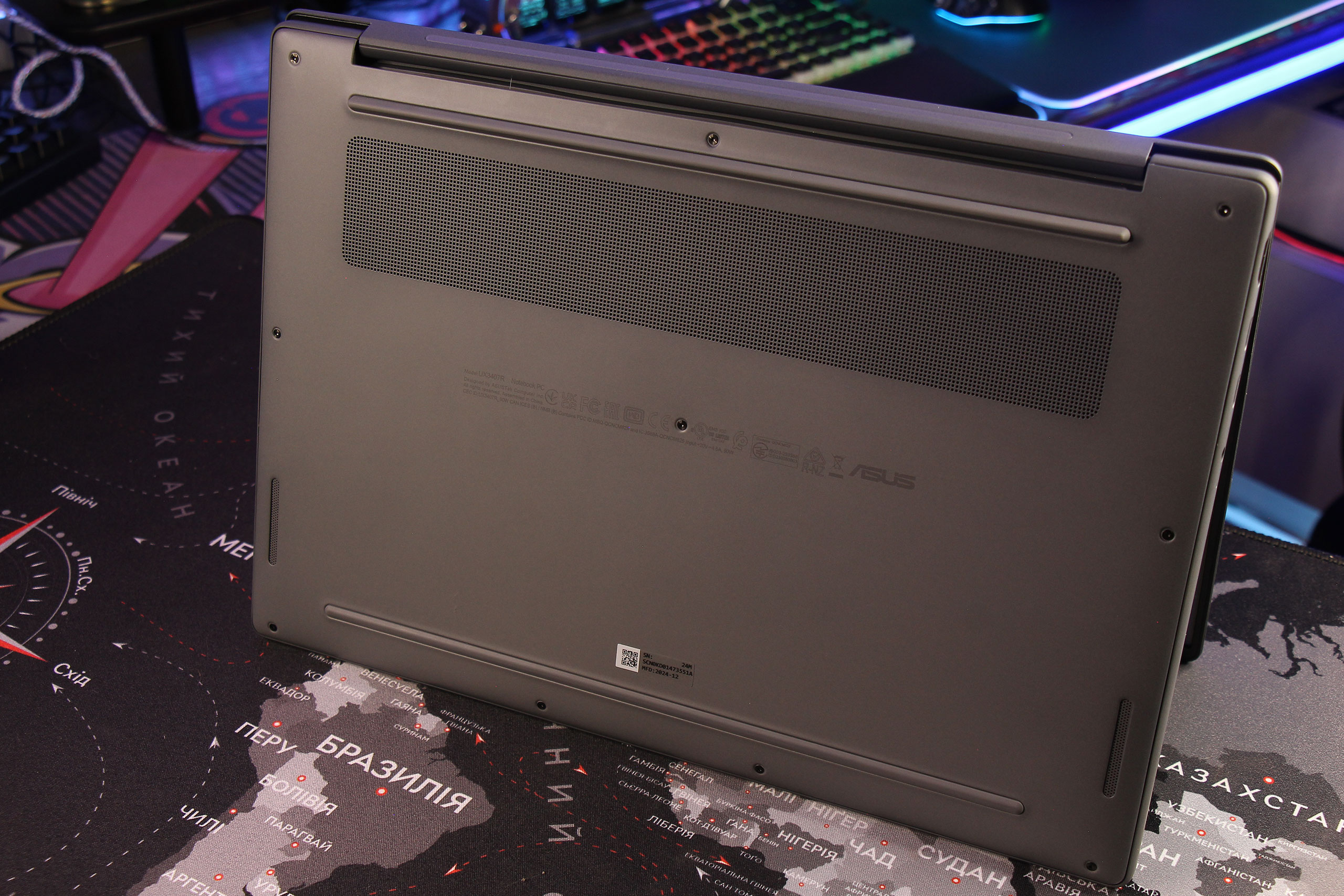 Дизайн ASUS Zenbook A14 дотримується сучасної мінімалістичної естетики з округлими кутами та ледь помітними швами. Доступний у двох кольорах — Iceland Gray та Zabriskie Beige, тестовий зразок виконано в першому варіанті. Головна особливість — вага 0,98 кг, що робить Zenbook A14 одним із найлегших 14-дюймових ноутбуків на ринку. Габарити 31,07×21,39 см компактні для свого класу, товщина від 1,34 до 1,59 см залишає місце для необхідних портів.
