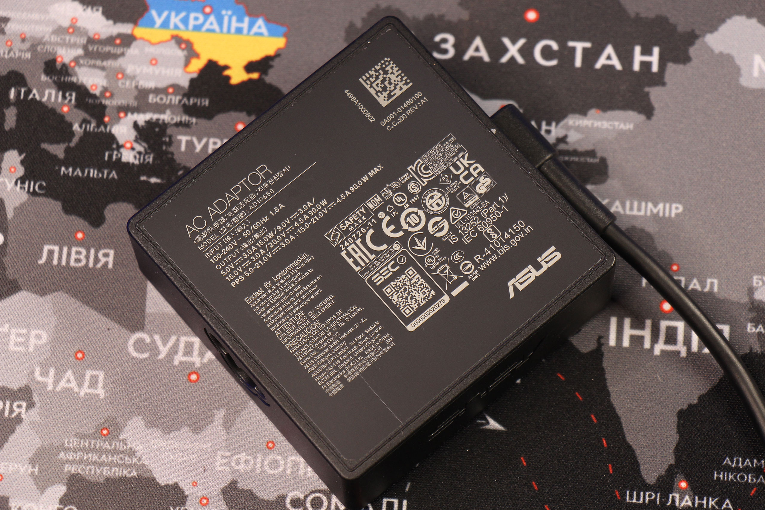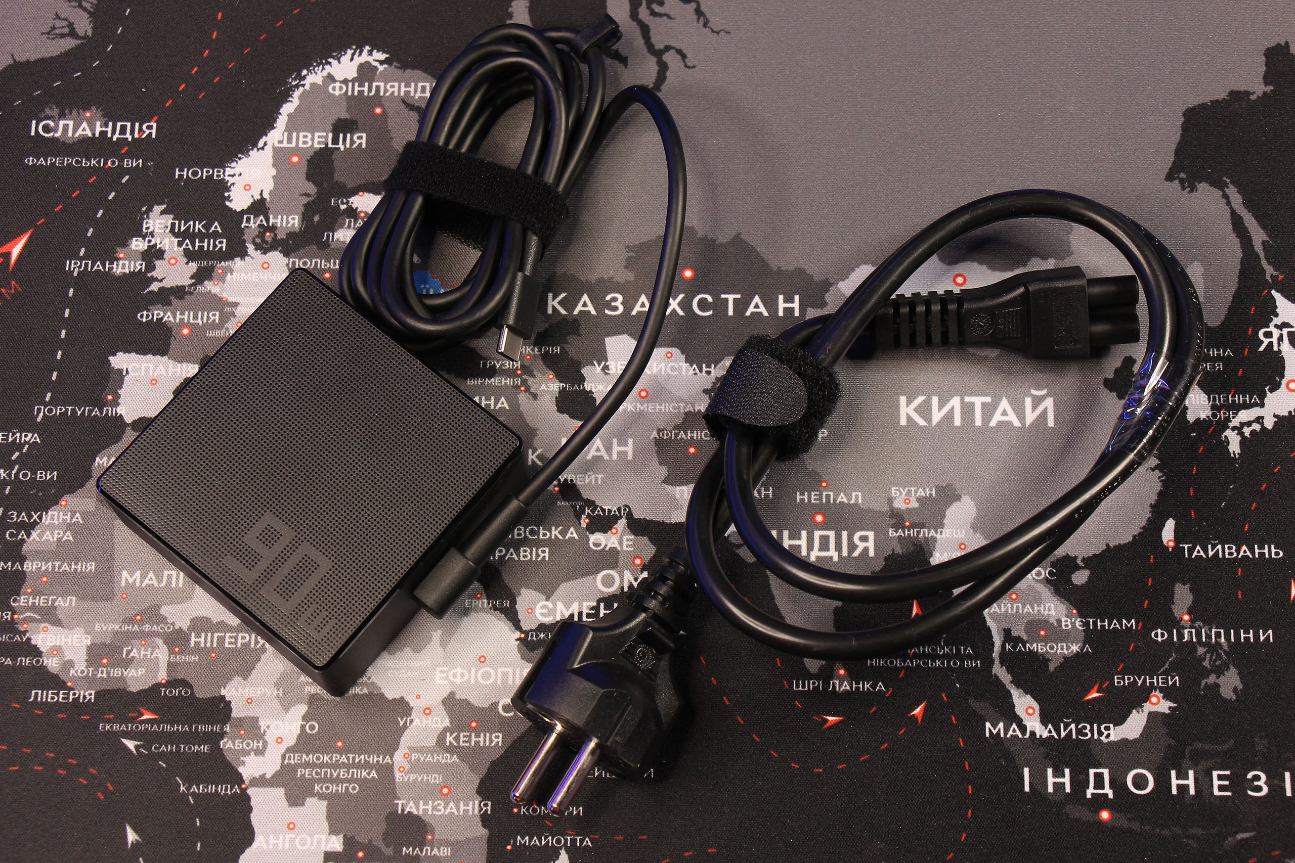 В комплекті постачається блок живлення потужністю 90 Вт з роз’ємом USB‑C та підтримкою широкої гами напруг, тож він згодиться також для заряджання інших пристроїв у дорозі.