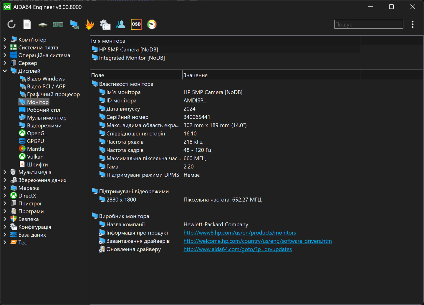 Дисплей HP ZBook Ultra G1a є одним з ключових елементів, що визначають цінність пристрою для професійних користувачів. 14-дюймова OLED-панель виробництва Samsung з роздільною здатністю 2,8K (2880×1800 пікселів) забезпечує виняткову чіткість зображення. Співвідношення сторін 16:10 надає більше вертикального простору порівняно з традиційним 16:9, що особливо цінно при роботі з документами та вебсторінками. Частота 120 Гц на сьогодні вже є стандартом класу.