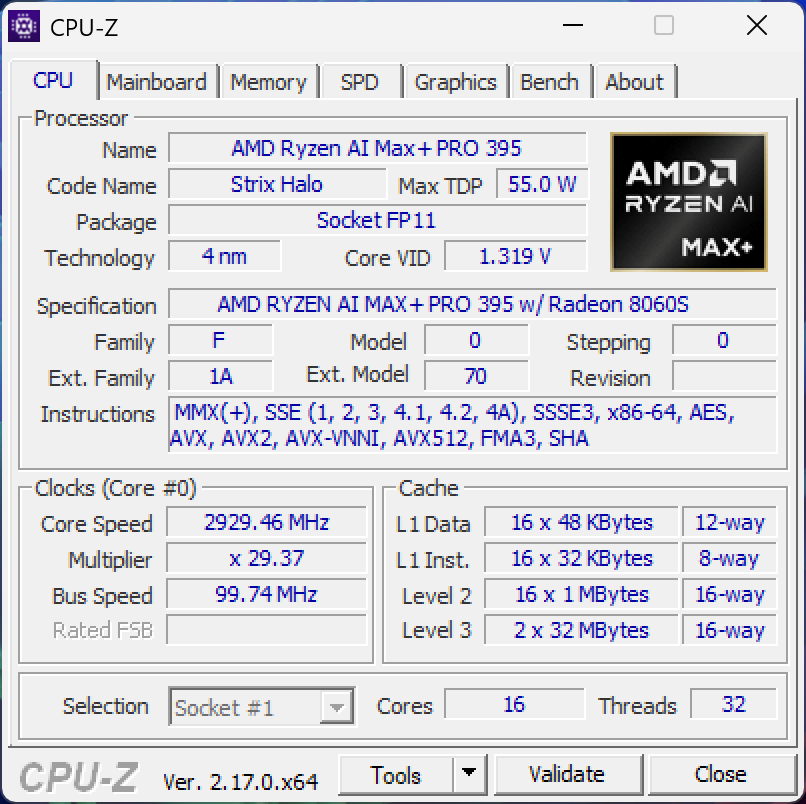 | Процесор | AMD Ryzen AI Max+ PRO 395 (16 ядер Zen 5, 32 потоки, до 5,1 ГГц, NPU 50 TOPS) |