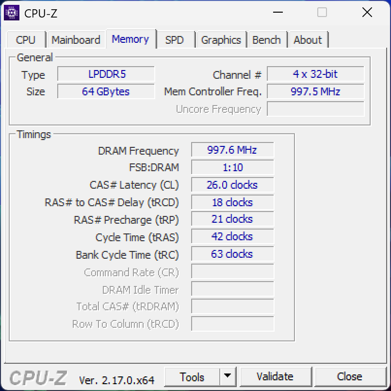 Оперативна пам’ять обсягом 64 ГБ типу LPDDR5X-8533 припаяна безпосередньо до материнської плати. Пам’ять динамічно розподіляється між CPU та GPU залежно від поточних потреб, що запобігає падінню продуктивності при вичерпанні виділеного GPU сегменту.