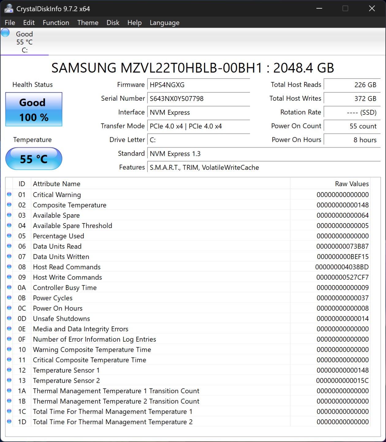| Накопичувачі | 2 ТБ NVMe PCIe 4.0 SSD, Samsung NZVL22T0HBLB-00BH1 |