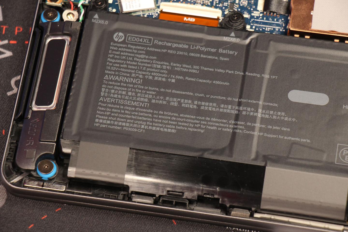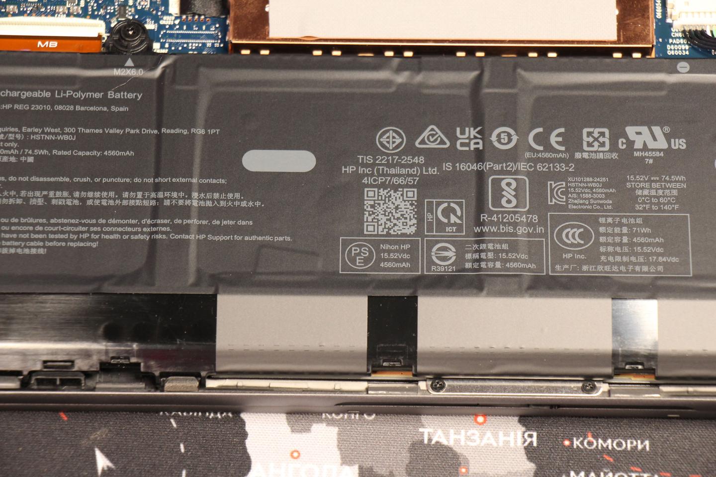 Літій-полімерний акумулятор ємністю 74,5 Вт·год має чотири комірки.