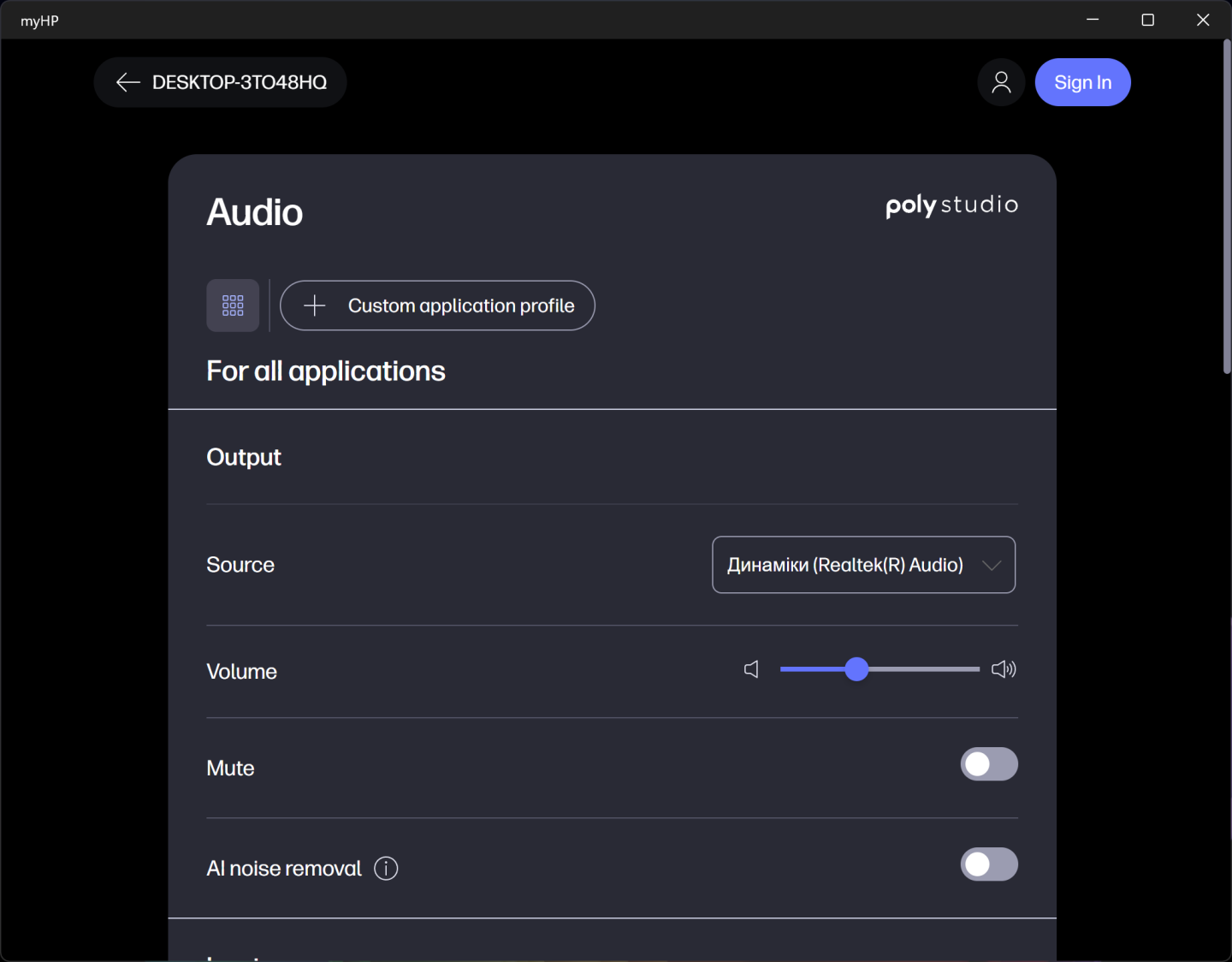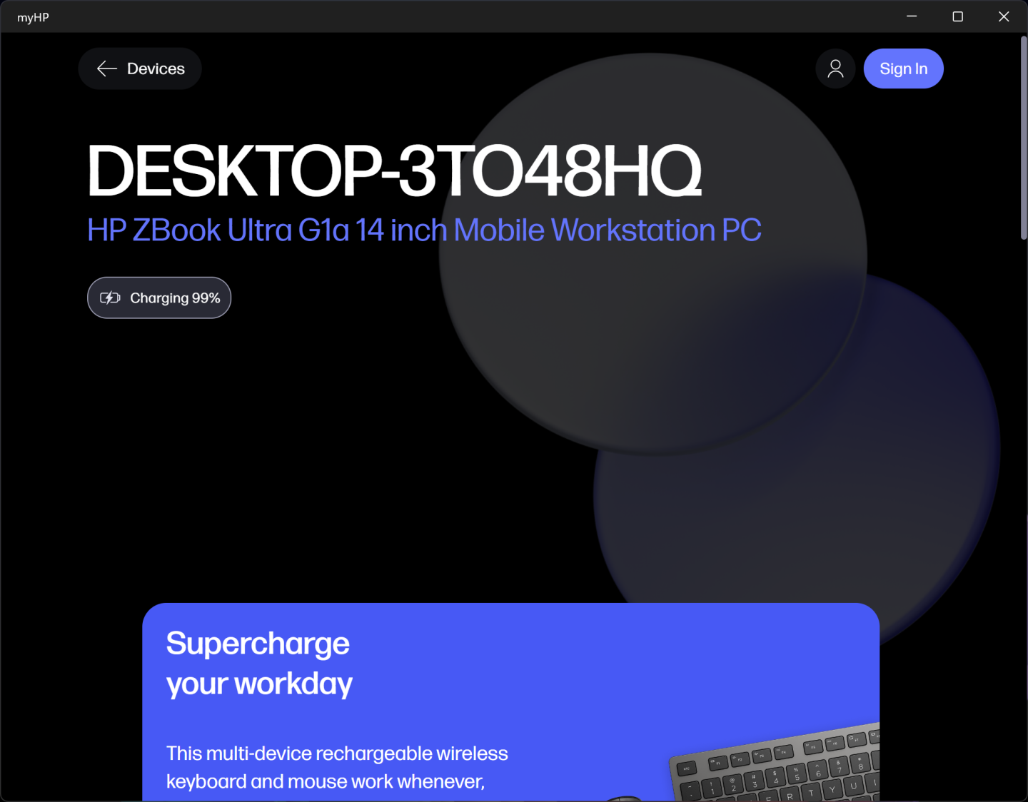Центральною утилітою керування є застосунок HP з досить дивним mobile-first інтерфейсом, в якому зібрано можливі налаштування ноутбука за межами звичних для Windows.