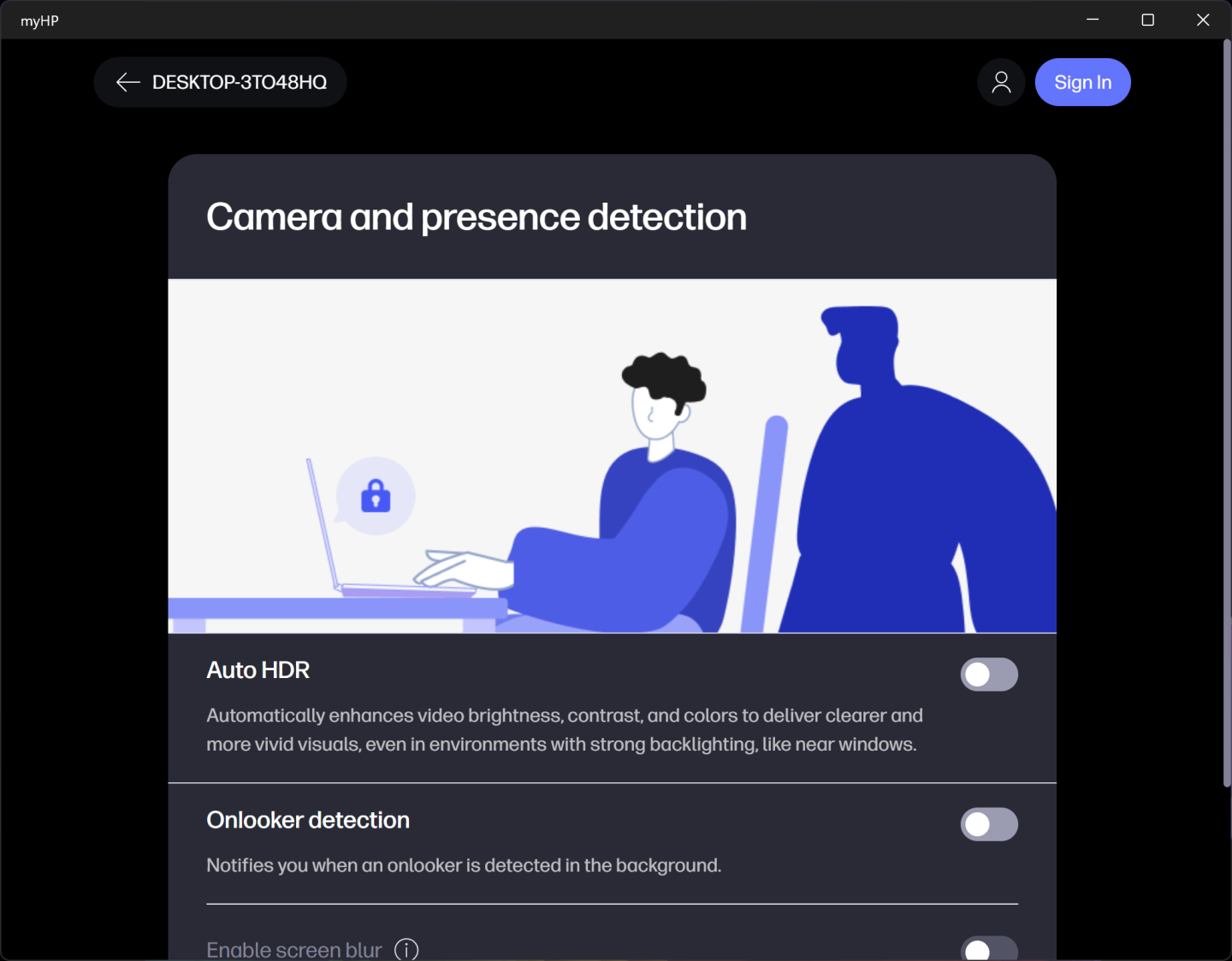 Камера також отримала власне програмне забезпечення, як й застосунок для технічної підтримки HP. Є також фірмовий ШІ-асистент HP AI Companion: