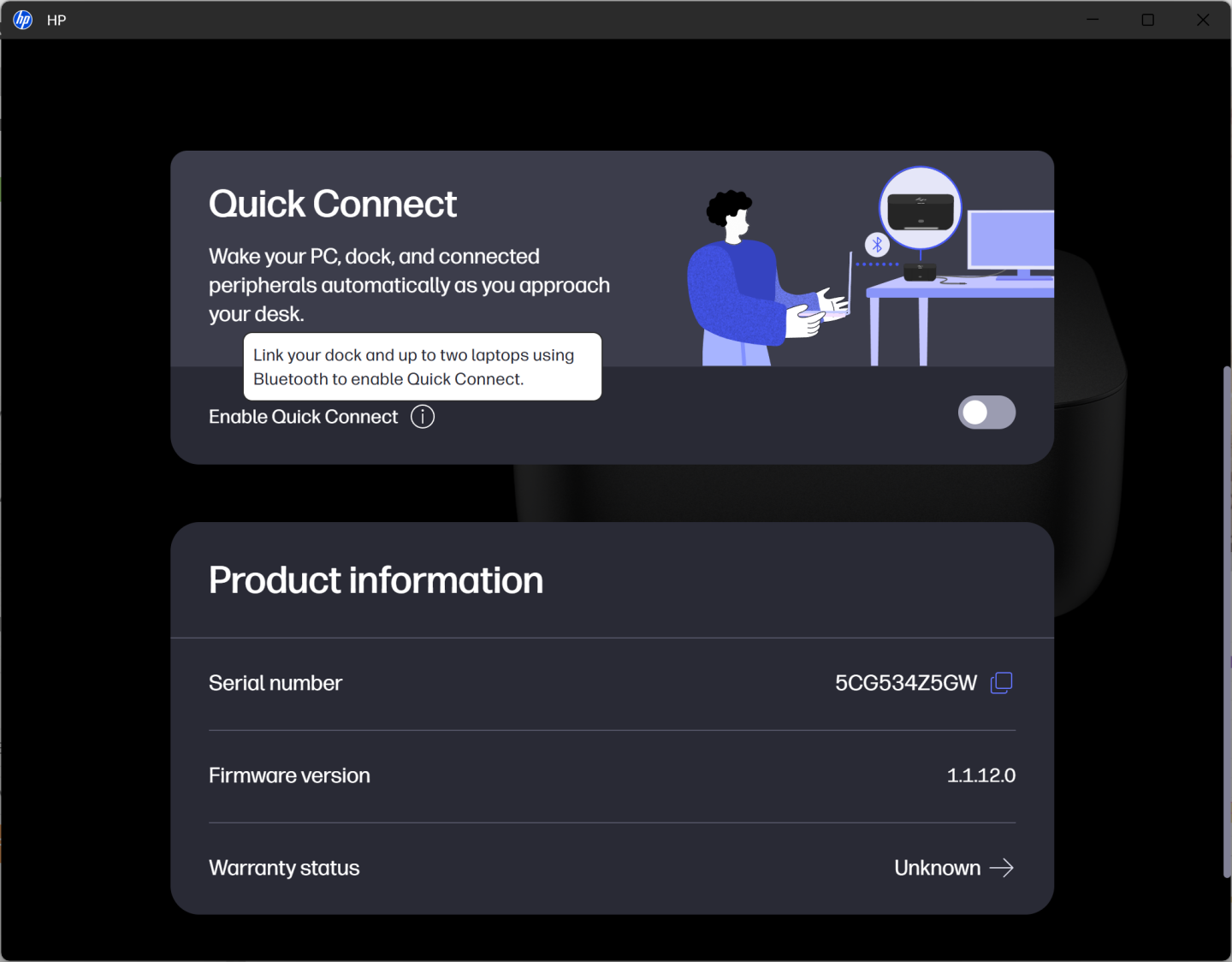 Застосунок HP миттєво ідентифікує підключення фірмової док-станції й пропонує навіть налаштувати її параметри: