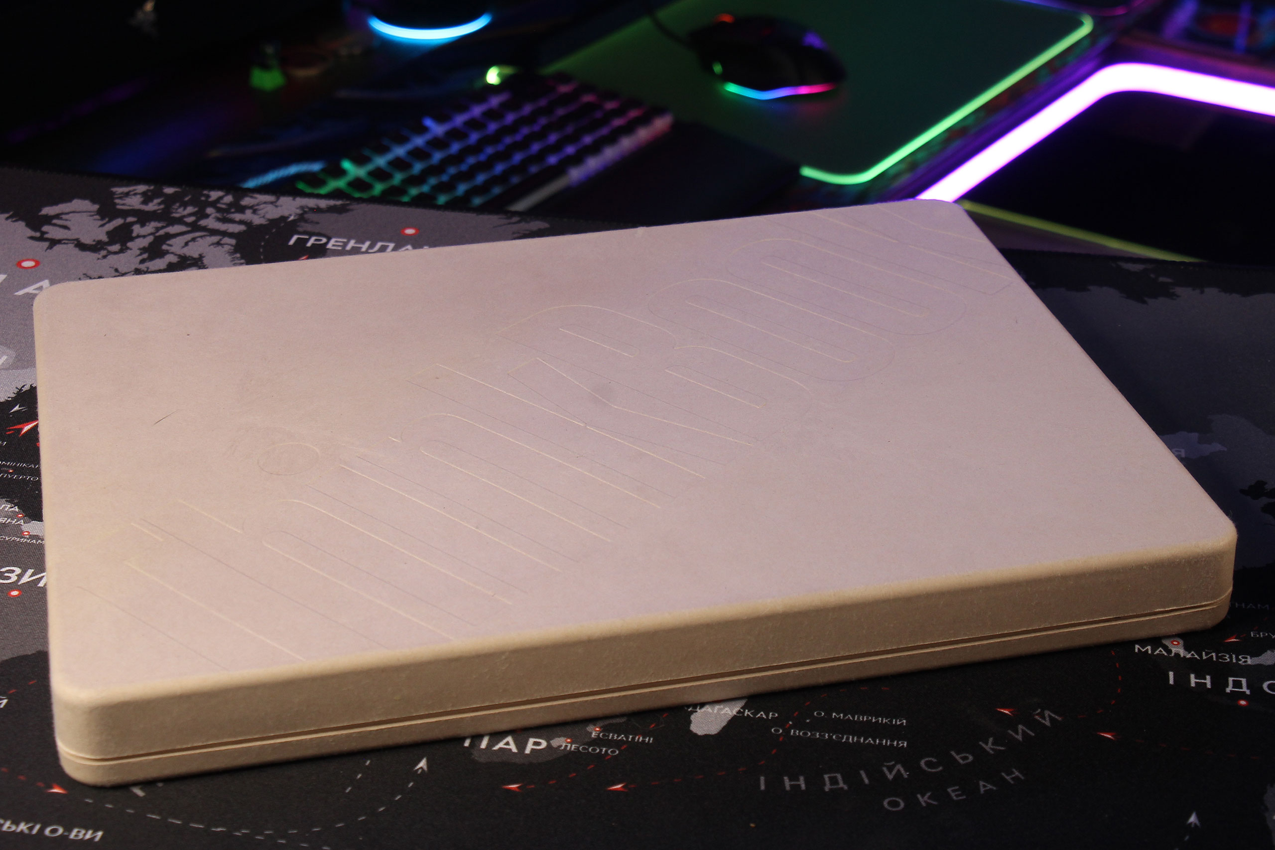 Ноутбук постачається у коробці зі звичайного картону, але всередині сам пристрій сховано в меншій упаковці, більш привабливій для відчуттів при анбоксингу.