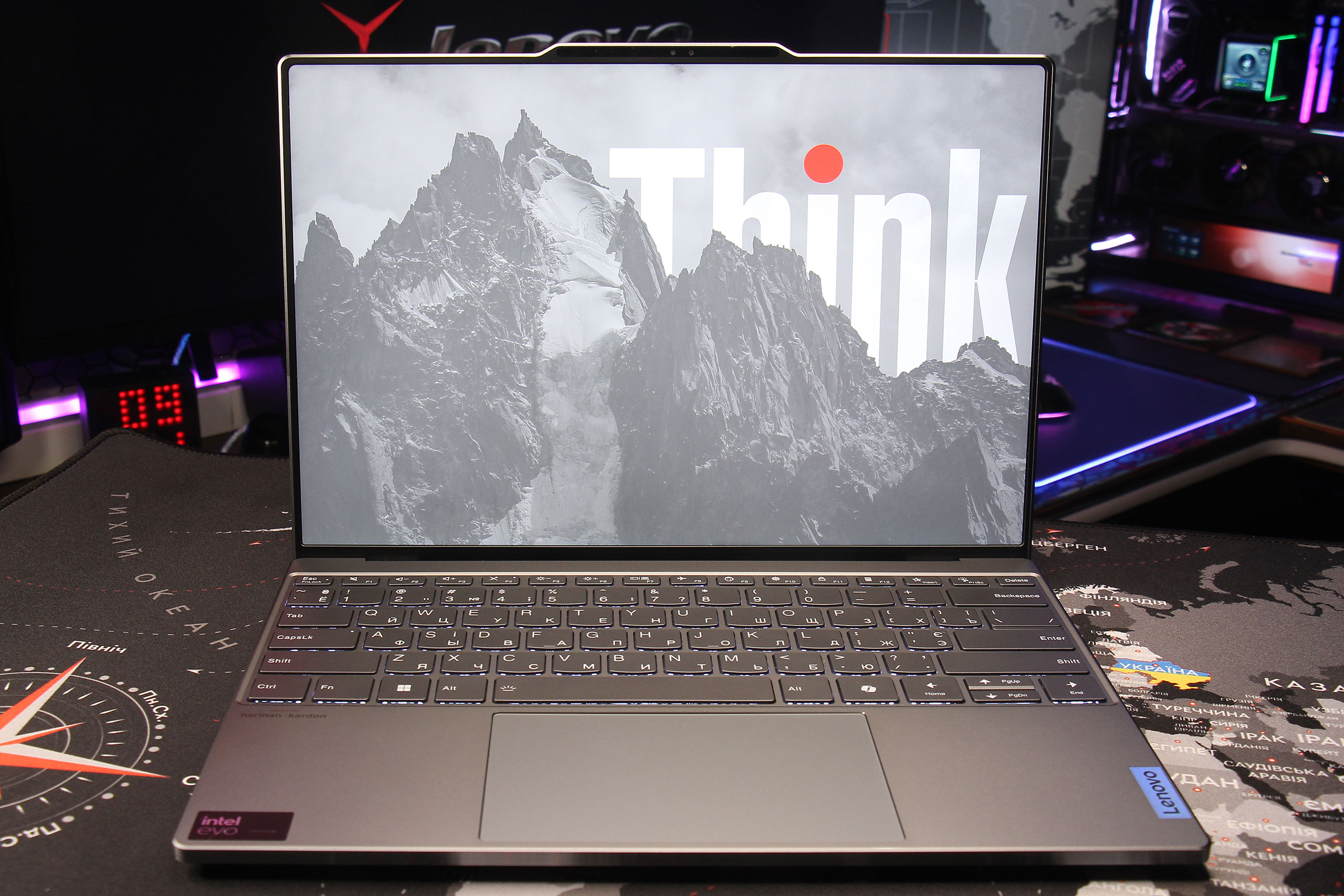 Клавіатура успадкувала ергономіку ThinkPad, адаптовану під сучасні потреби. Якщо є щось незмінне у Lenovo, то це опукла знизу форма клавіш — подібну можна побачити, наприклад, в нашому огляді Lenovo Z710 десять років тому. Ширина клавіатури максимальна для ширини самого пристрою. Українська та англійська розкладки зроблені однаково якісно, акуратним корпоративним шрифтом. Біле підсвічування має два рівні яскравості та посилює читабельність білих символів на сірих клавішах, але й без нього все видно добре. Присутня клавіша Copilot (у 2025 році згадувати це в оглядах ноутбуків ми більше не будемо, бо Microsoft за пів року зробили видатну роботу з розповсюдження свого стандарту серед виробників). Тачпад збільшеного розміру (120x75 мм) має гладку поверхню з хорошим ковзанням та чітким спрацьовуванням по всій площі. Підтримуються стандартні жести Windows та додаткові функції Lenovo Smart Gestures. Його неможливо натиснути фізично, але є якісний вібраційний фідбек.