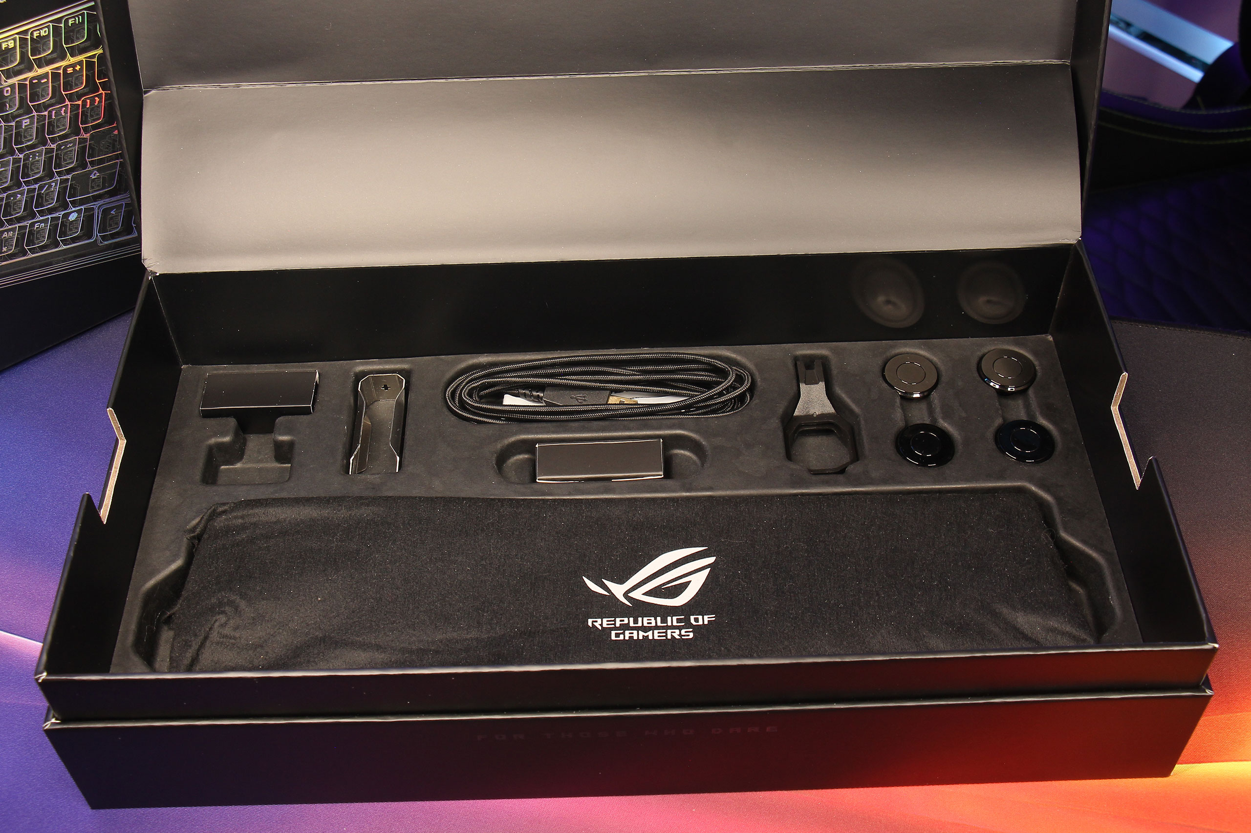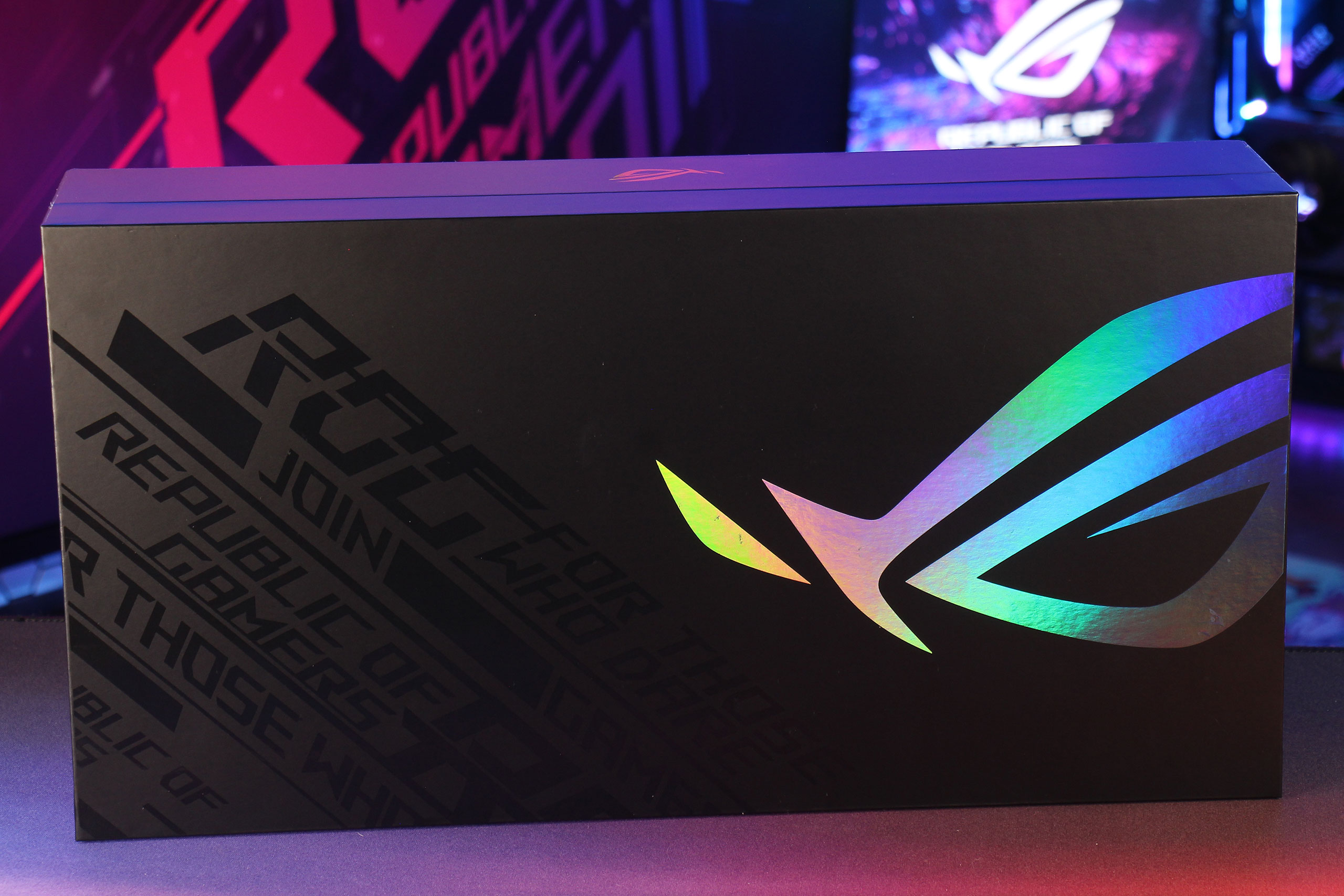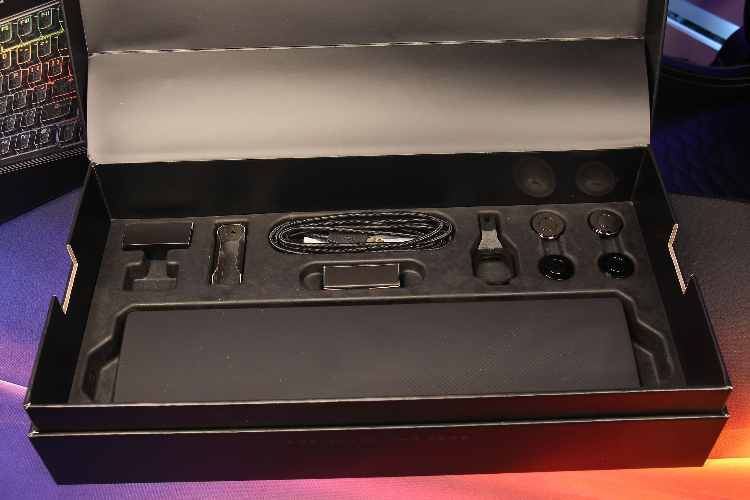 Коробка ROG Azoth Extreme відразу демонструє преміальний статус продукту. На відміну від звичайних упаковок, тут використовується багаторівнева конструкція з товстого картону, що відкривається плавно та елегантно. Сама коробка важить майже 1,5 кг — і це без клавіатури.