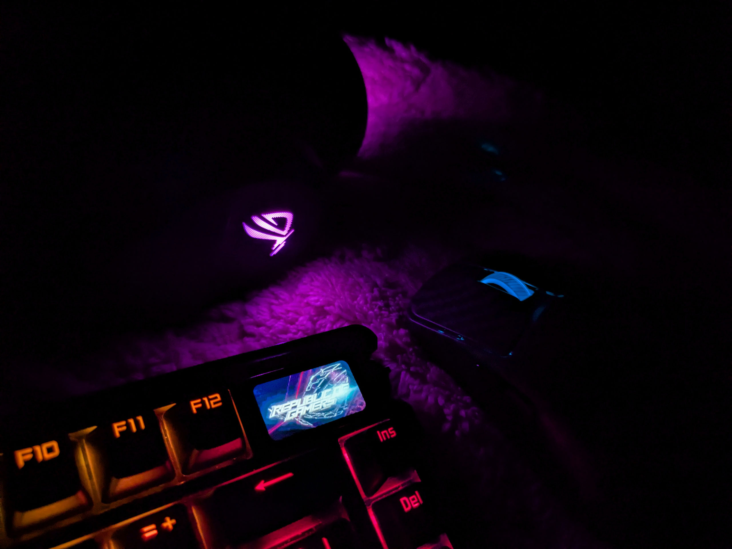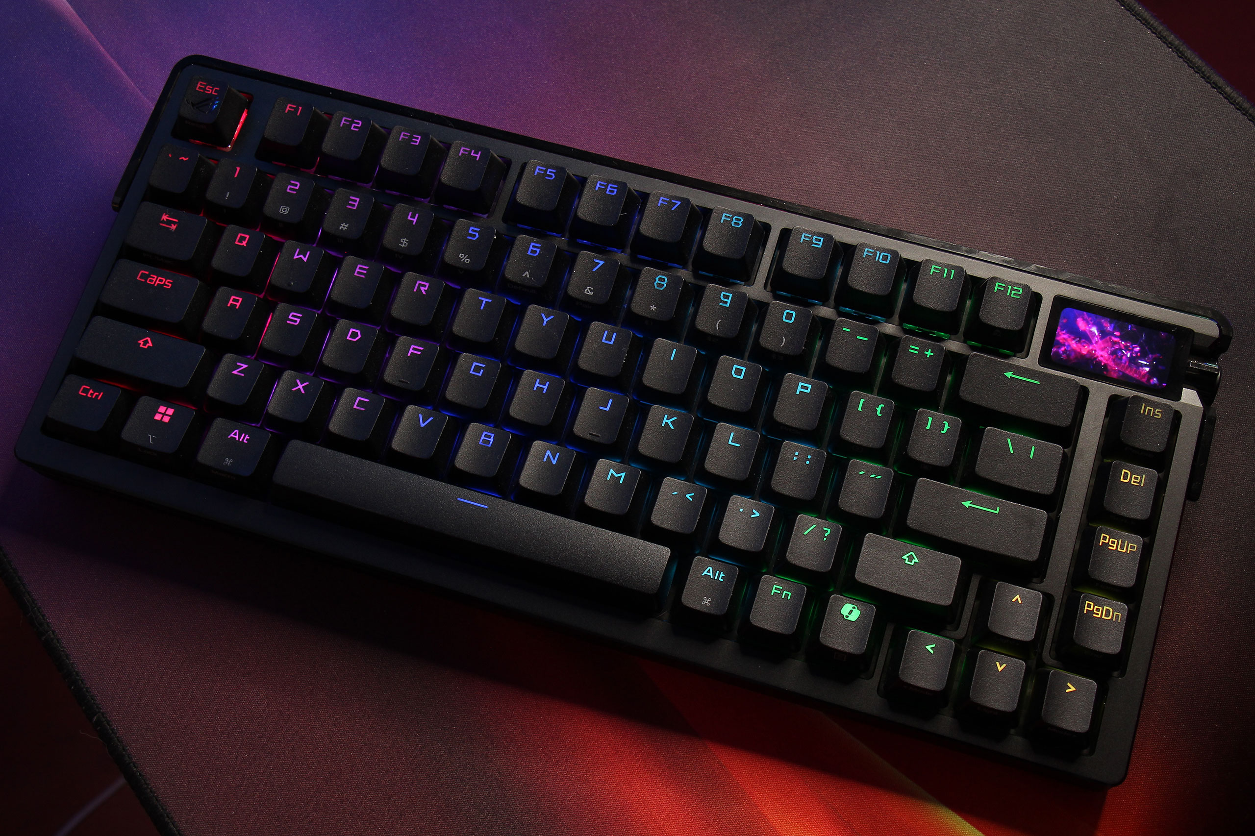 До речі, що стосується підсвітки Aura Sync: вона непогана, але не найкраща — порівняння з Razer Blackwidow V4 Pro 75% ця клавіатура програє настільки ж, наскільки виграє у конкурента змагання за якість та корисність OLED-екранчика.