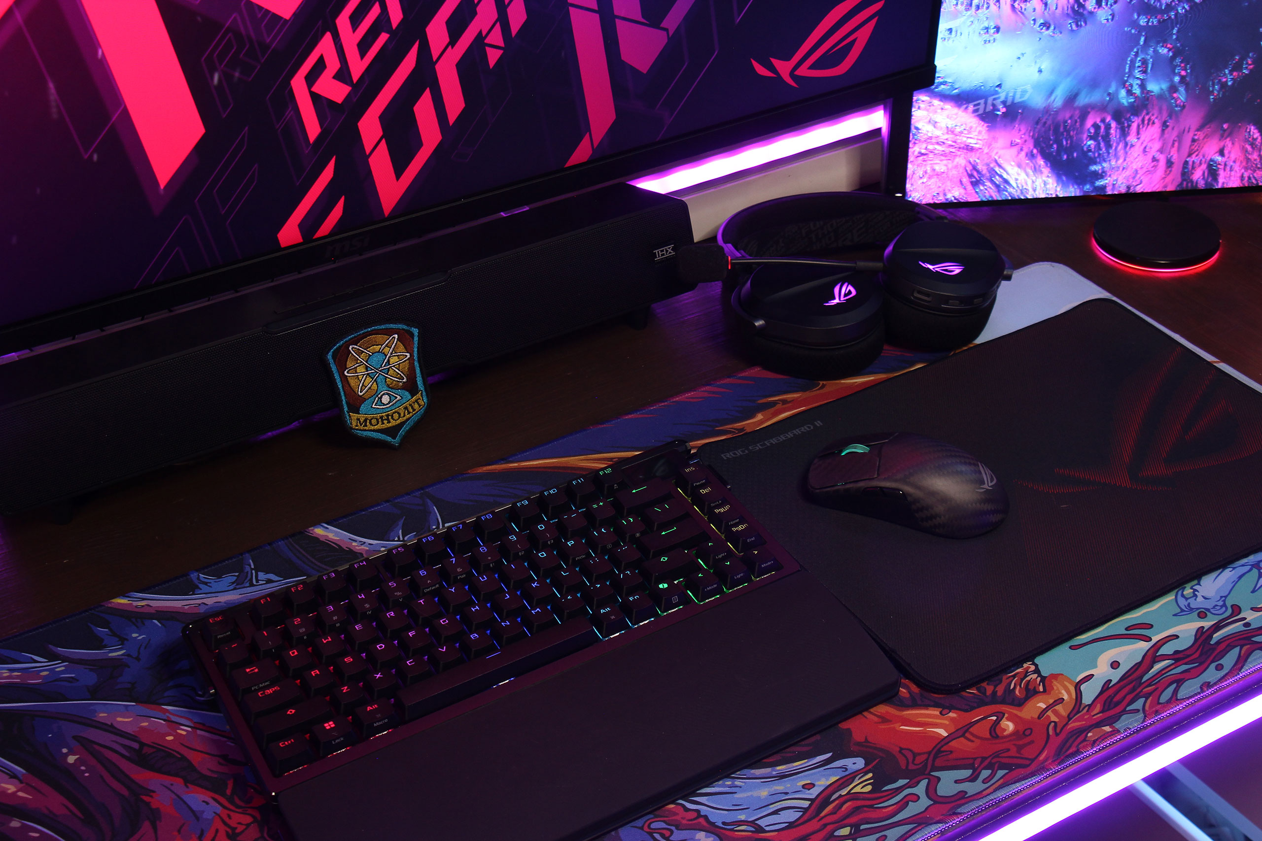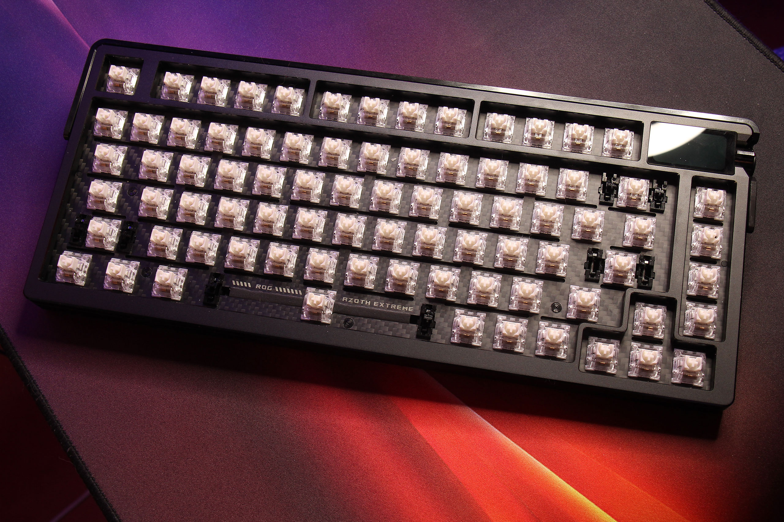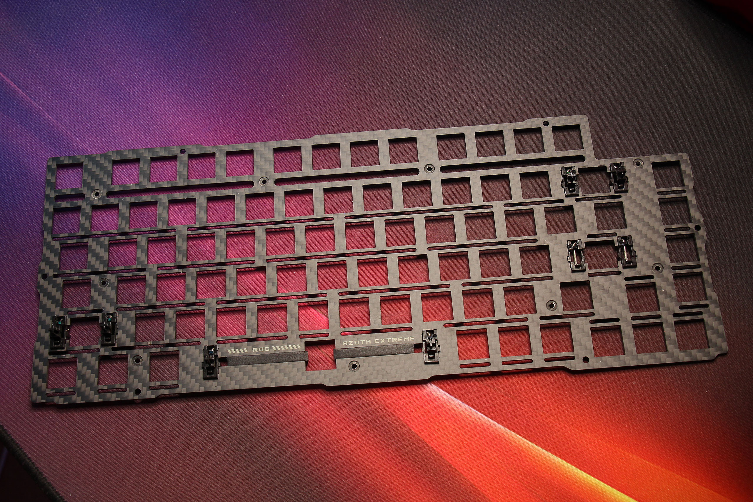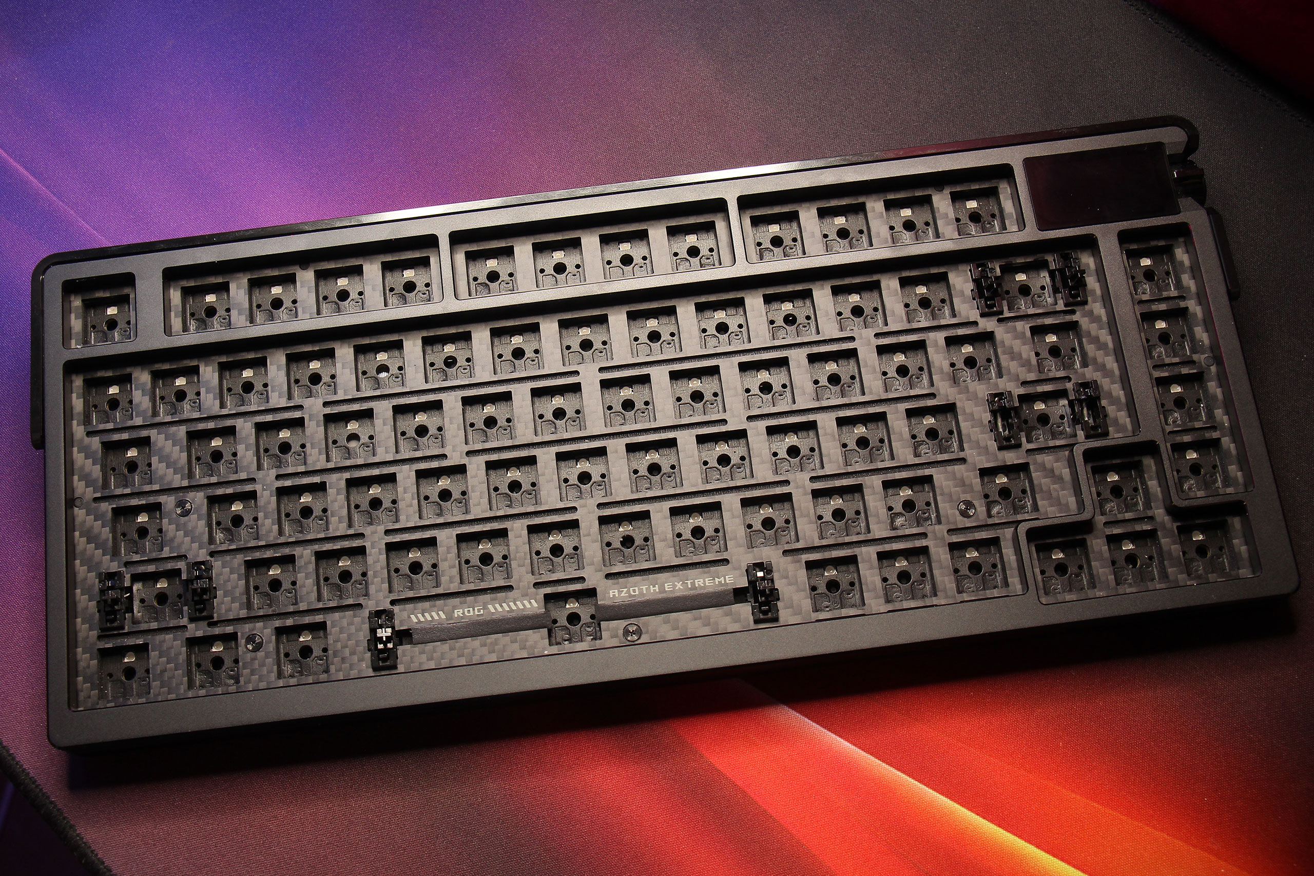 Цікаво, що порівняння з преміальними кастомними клавіатурами виходить на користь ASUS. За ті самі $500 при самостійній збірці важко отримати такий рівень промислової якості виготовлення, матеріалів та комплектації. Повністю алюмінієвий корпус — не новина, але така чудова його обробка, карбоновий плейт, шумоізоляція, попередньо змащені стабілізатори з кріпленням до плати — все це або не завжди взагалі пропонується, або доводиться докуповувати окремо при створенні власної клавіатури, що разом з кейкапами та перемикачами швидко виводить бюджет за межі вартості навіть ASUS ROG Azoth Extreme. Втім, ринок подібних клавіатур взагалі не керується економічною логікою, а скоріше суб’єктивними езотеричними уявленнями про ідеальний звук.