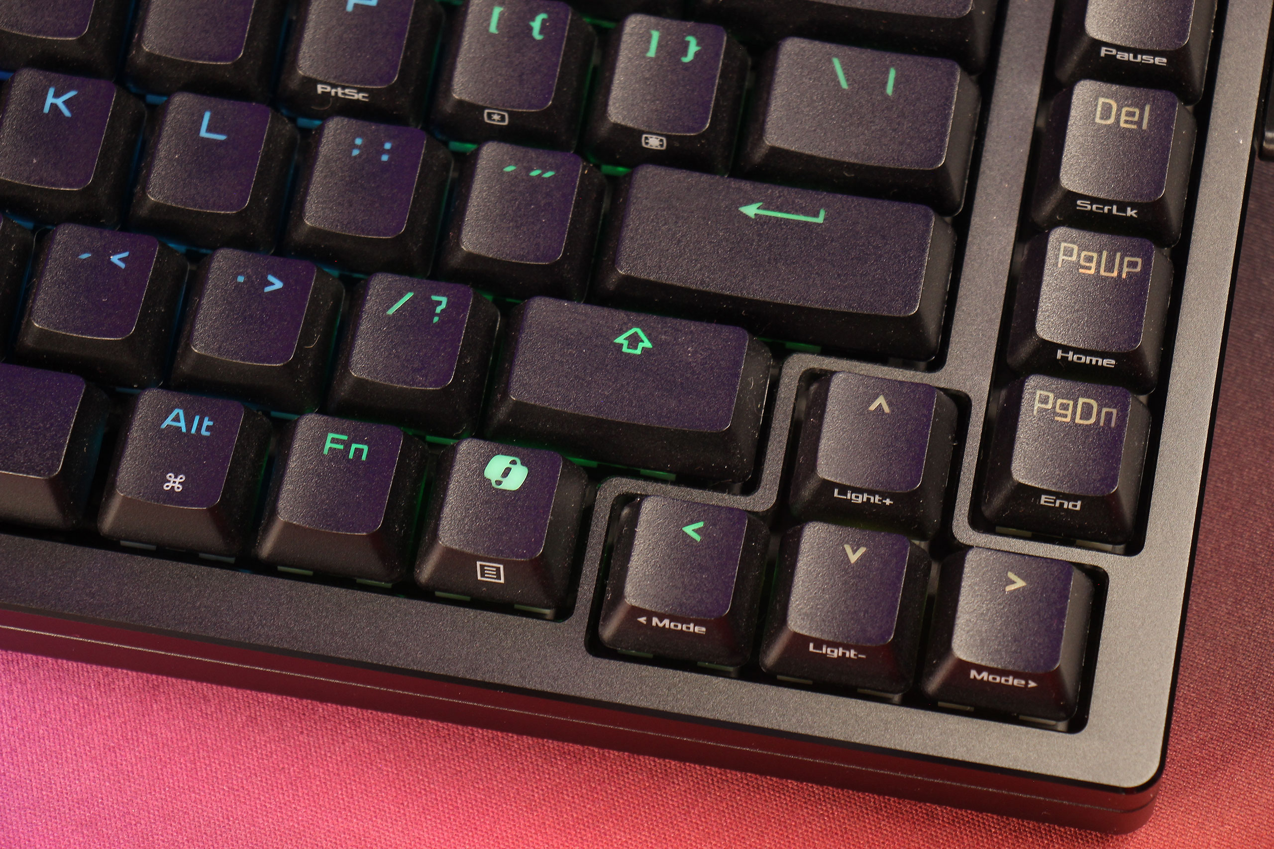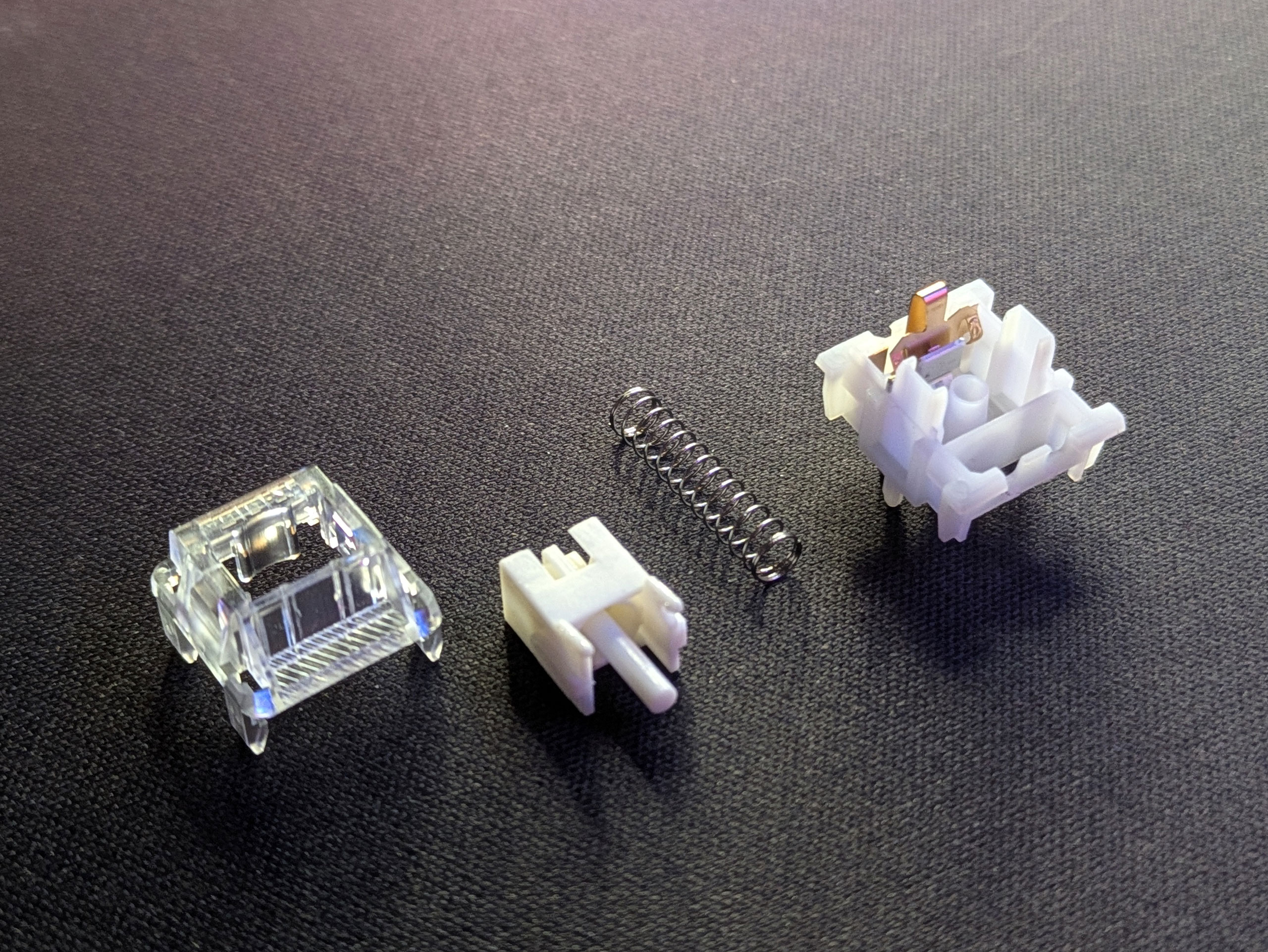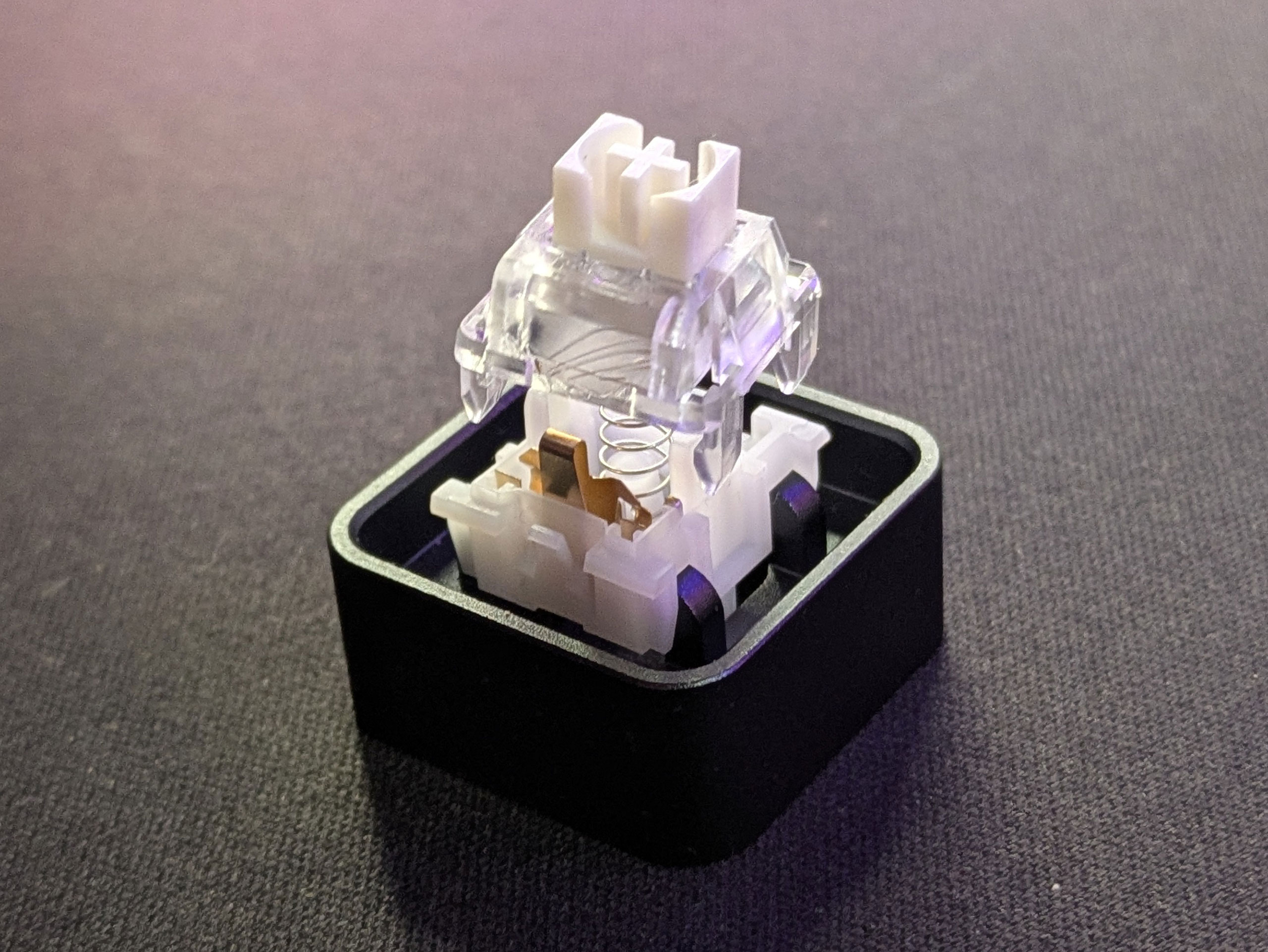 Перемикачі попередньо змащені на заводі засобом GPL 205g0, що забезпечує плавний, приємний хід без скрипів та затирань. Прозорий корпус з лінзою забезпечує рівномірне розсіювання RGB-підсвітки. Звісно, за бажанням користувача перемикачі можна замінити на будь-які інші.
