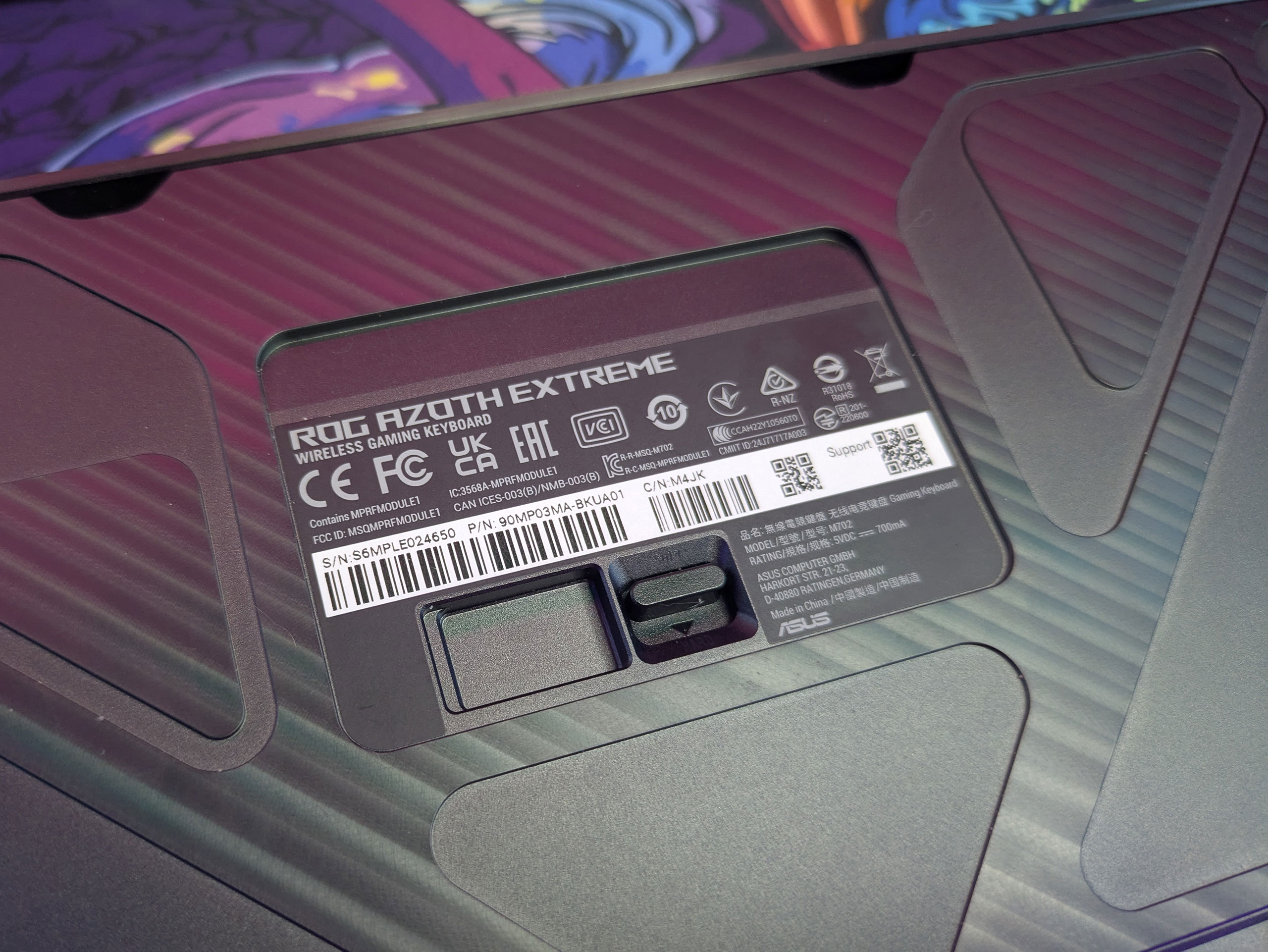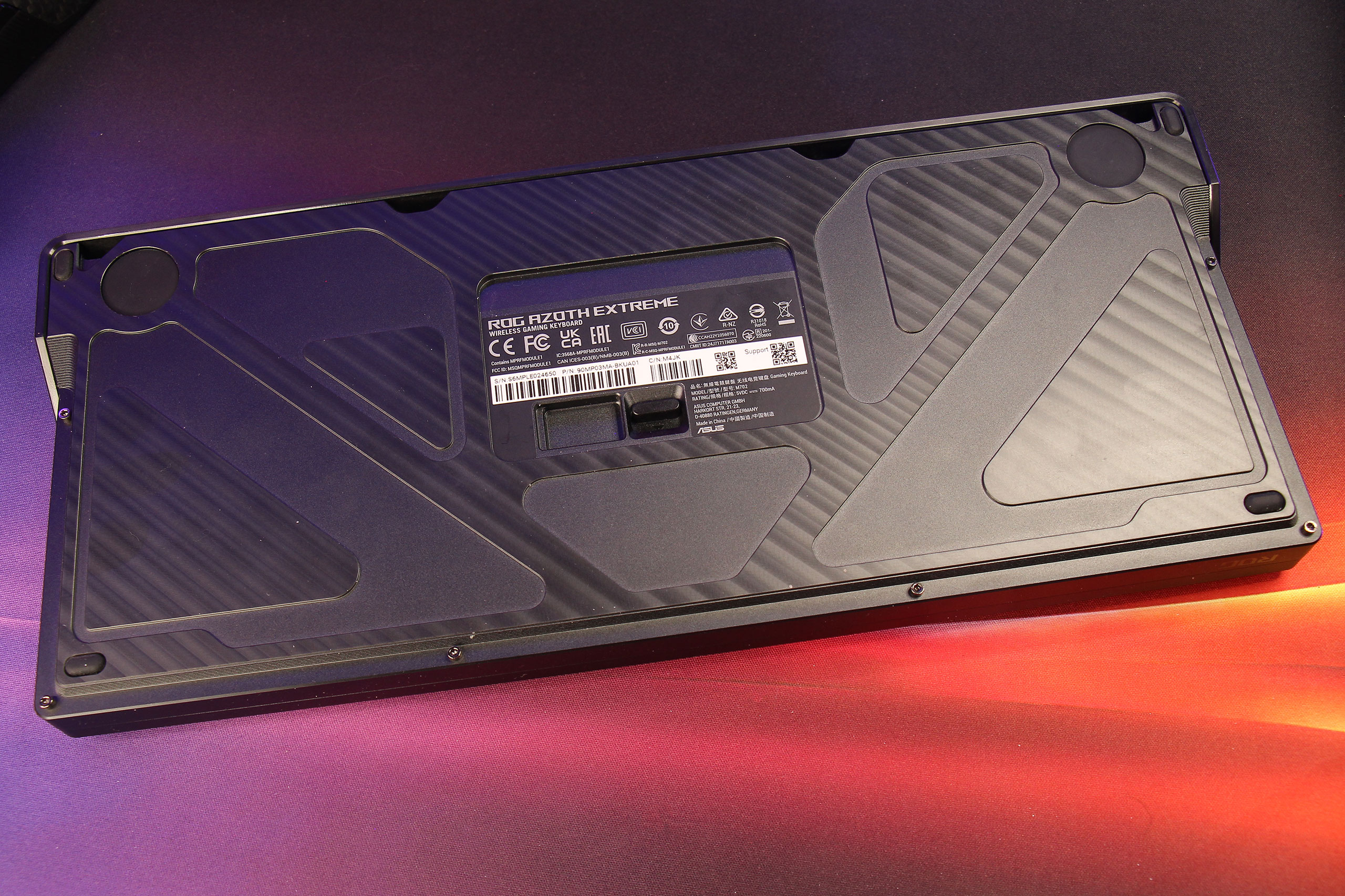 На відміну від багатьох інших клавіатур преміумкласу, ROG Azoth Extreme пропонує не просто якісну збірку та матеріали, а й ряд унікальних та досить складних технічних рішень. Головне з них — регульована прокладка (adjustable gasket mount), що дозволяє змінювати жорсткість друкування простим перемиканням важеля на нижній частині корпусу. У режимі Hard клавіші мають чіткий, пружний відгук, ідеальний для геймінгу. Режим Soft забезпечує м'якше натискання для комфортного набору тексту.