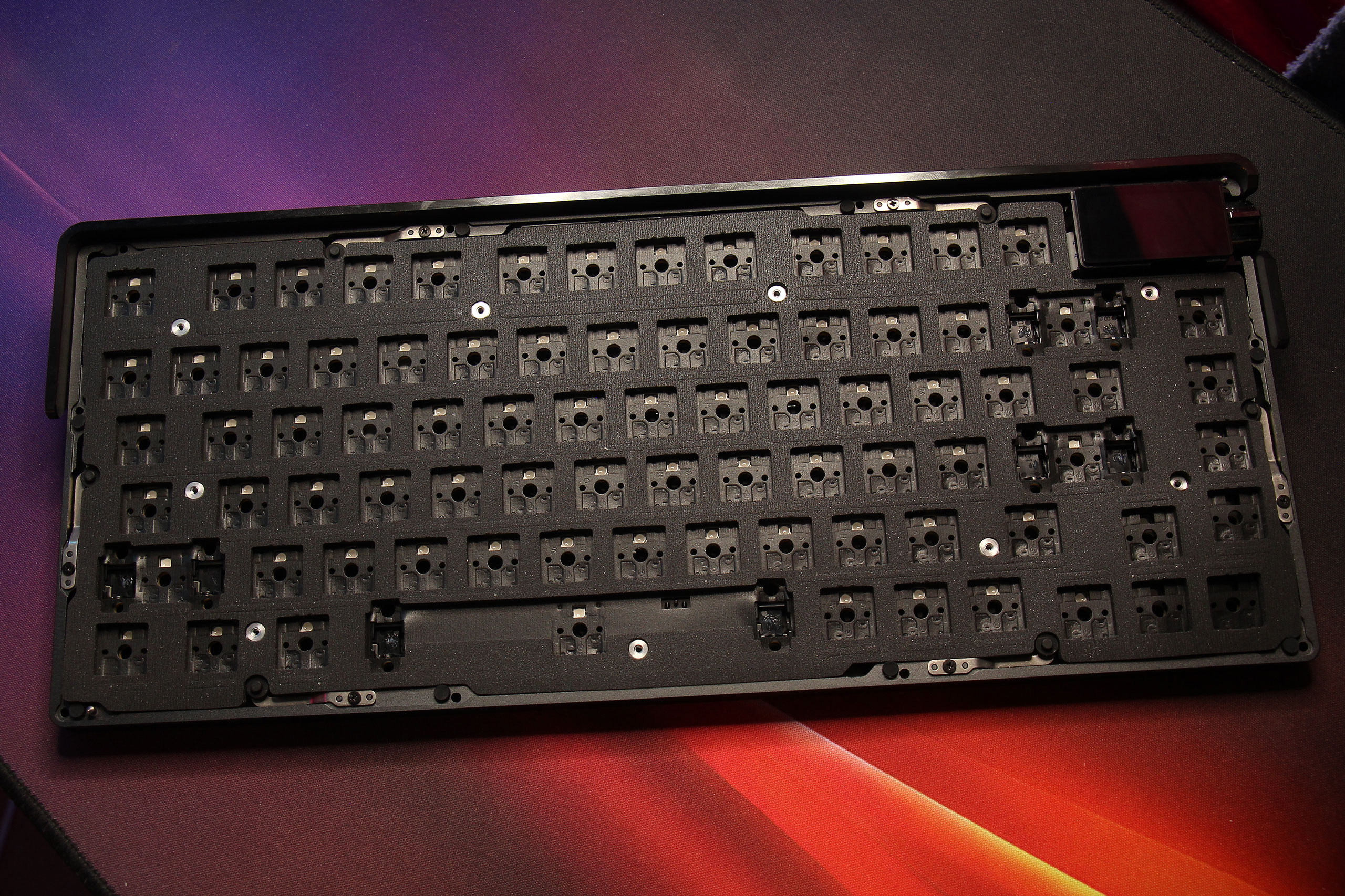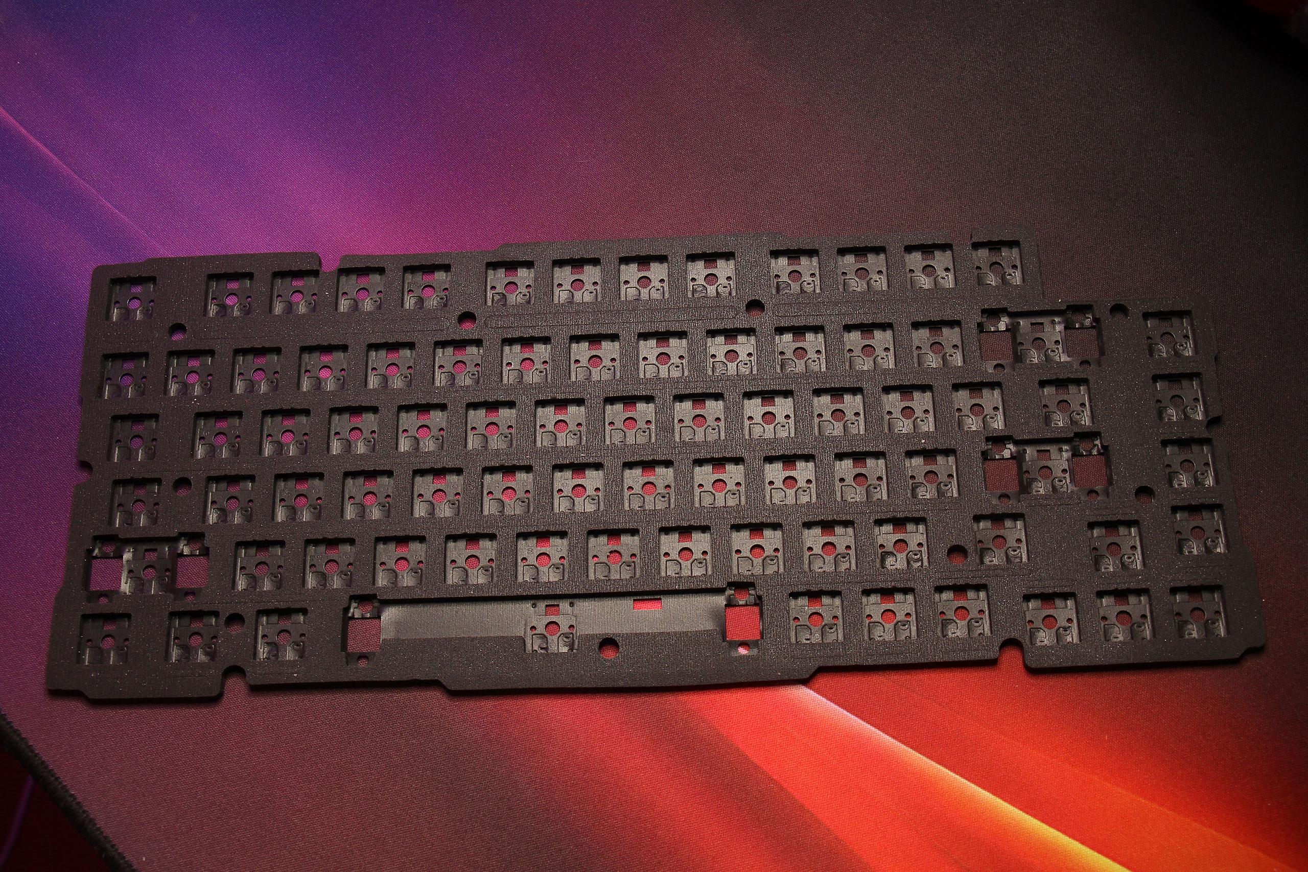 Система шумоізоляції складається з трьох шарів. Два шари піни Poron розташовані між платою та плейтом, забезпечуючи первинне поглинання вібрацій та формування звуку.