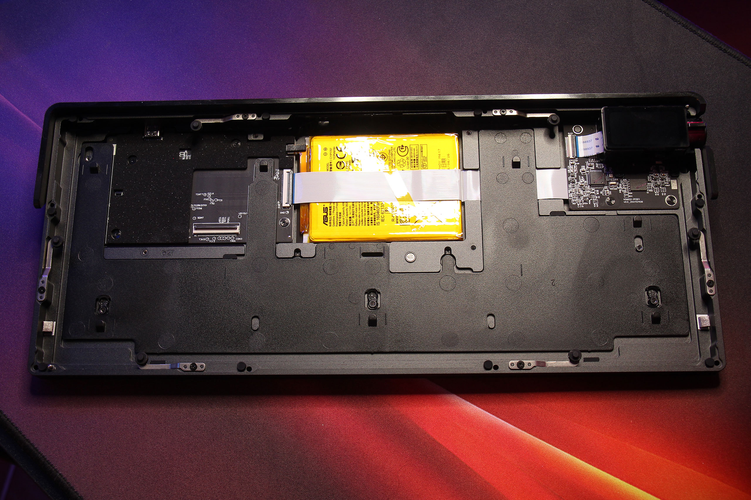 Нарешті, на самому дні можна побачити додаткові плати, що забезпечують всю працездатність ROG Azoth Extreme, а також батарею ємністю 3820 мАг.