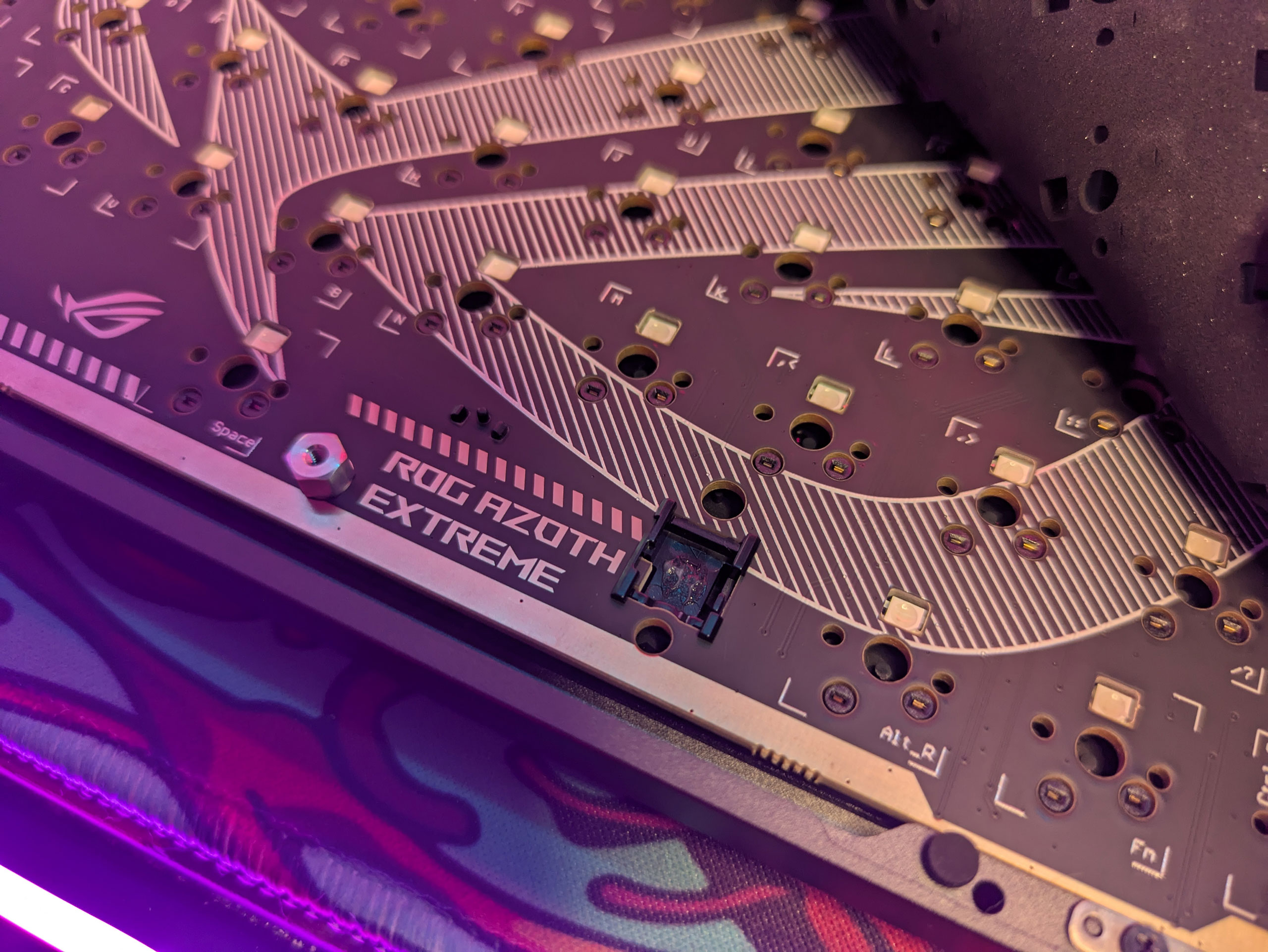 Хоча ASUS не заохочує користувачів розбирати ROG Azoth Extreme, друкована плата виглядає красиво, а не просто функціонально. Шкода, що цього майже ніхто не побачить.
