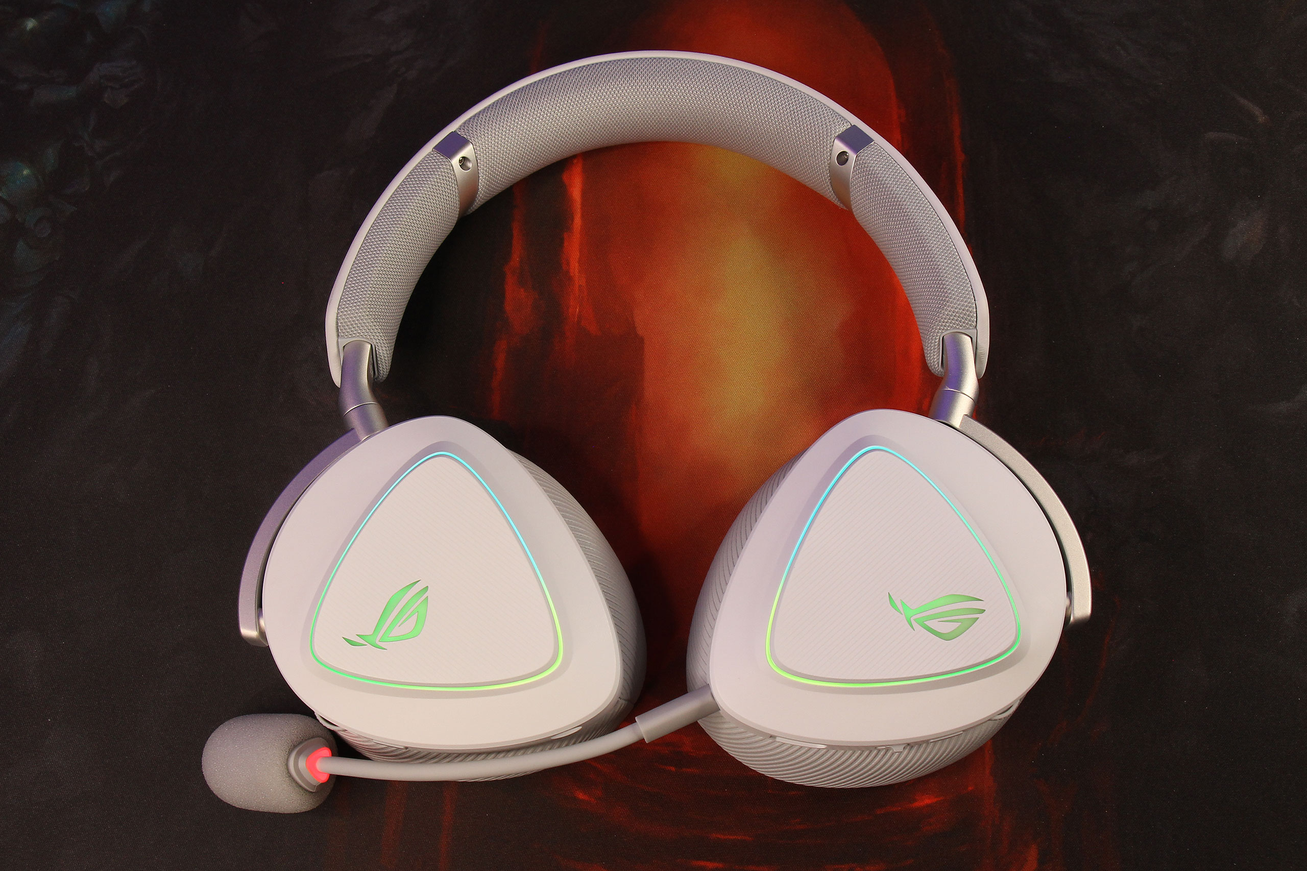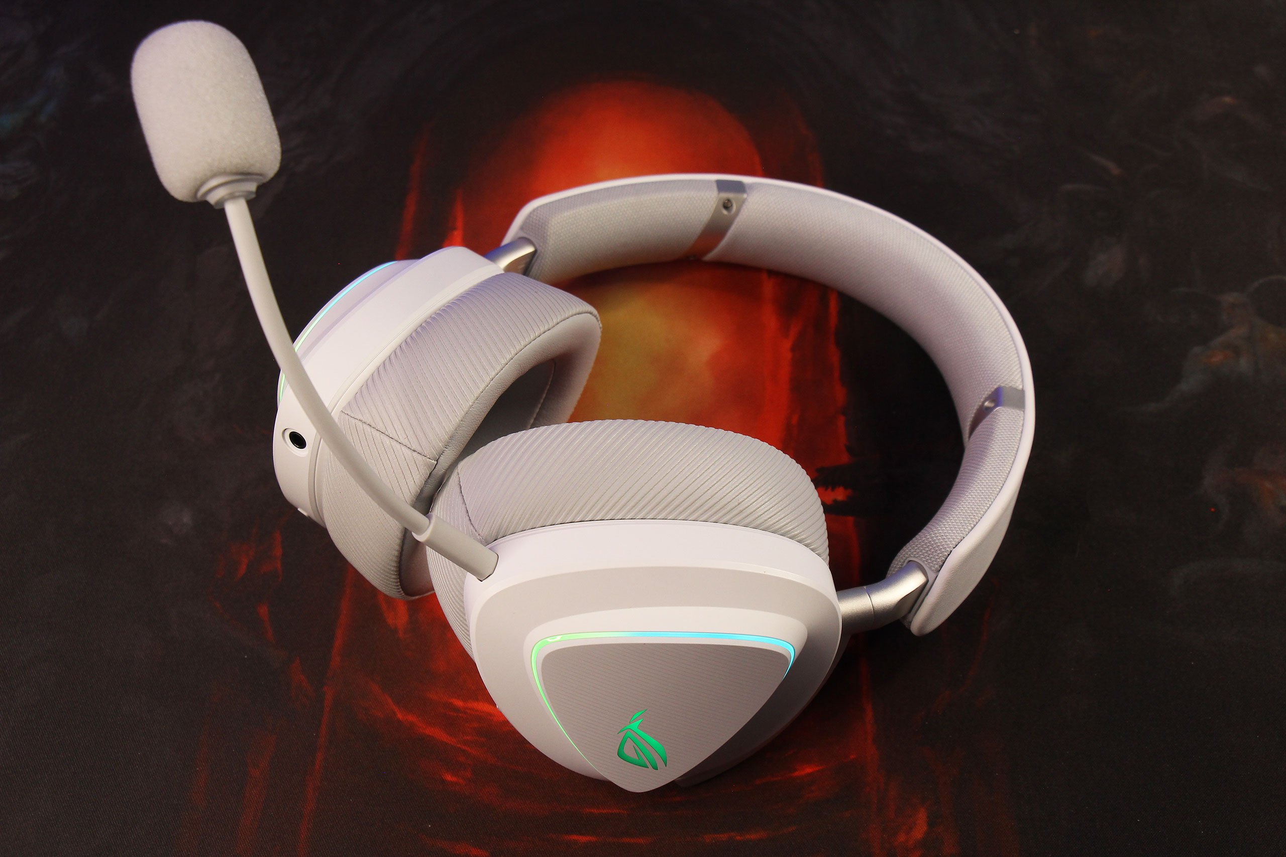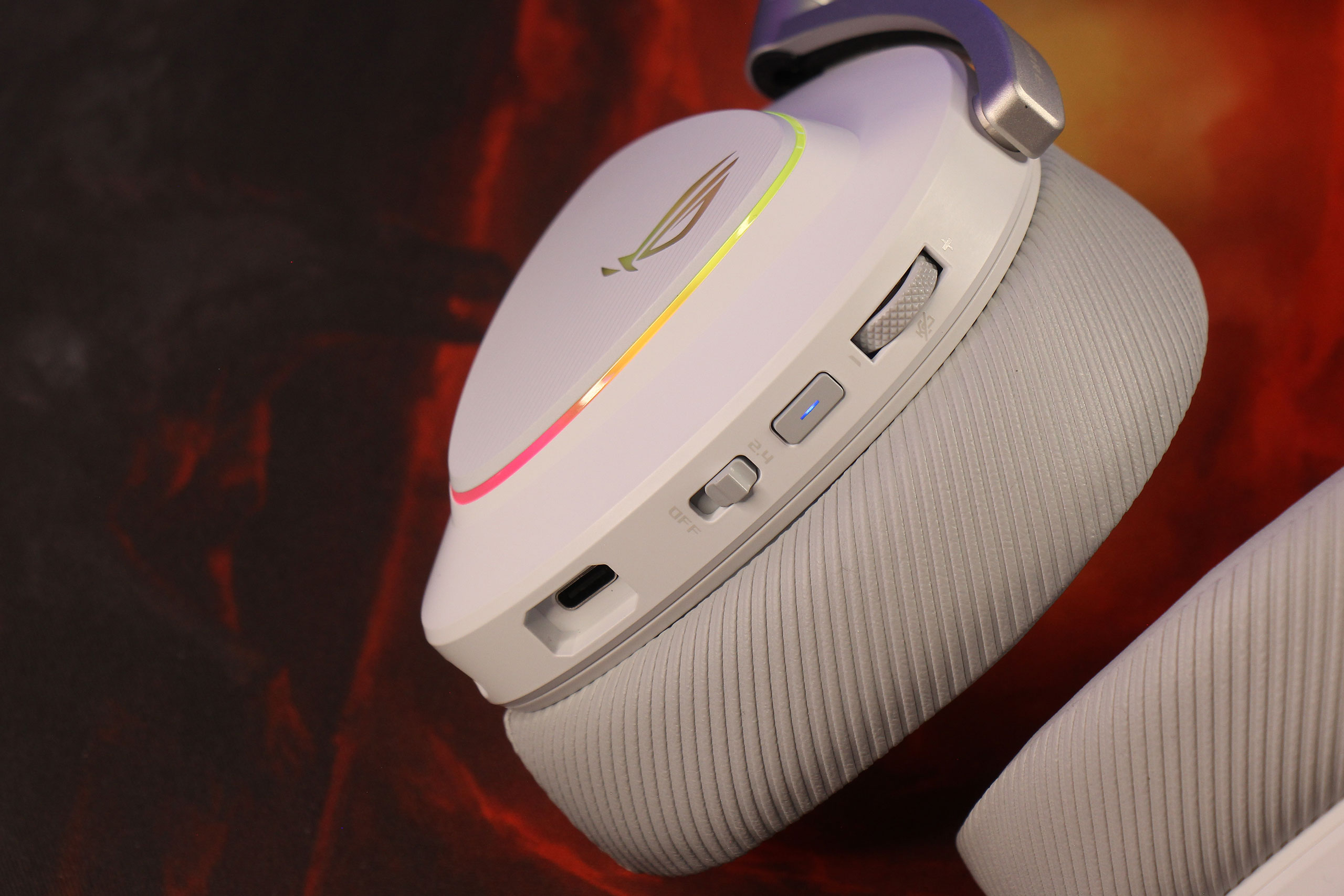 RGB-підсвічування розташоване на логотипах ROG та по периметру амбушур, створюючи елегантне світіння без надмірної яскравості. Освітлення підтримує технологію ASUS Aura Sync, дозволяючи синхронізувати ефекти з іншими компонентами екосистеми ROG. Для тих, хто не є прихильником RGB, підсвічування можна повністю вимкнути через програмне забезпечення, що істотно збільшує час роботи від акумулятора. Зовнішній вигляд гарнітури при цьому стає більш стриманим і не з’являється відчуття, що чогось не вистачає.