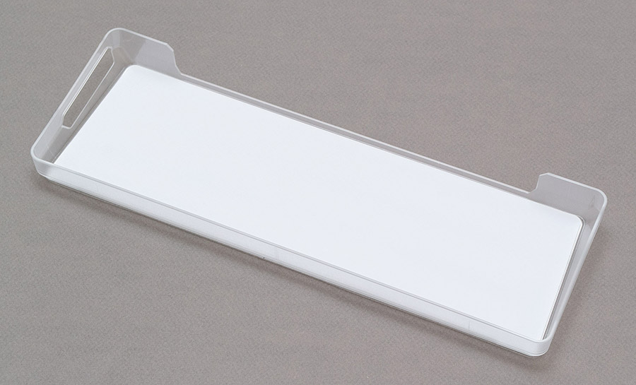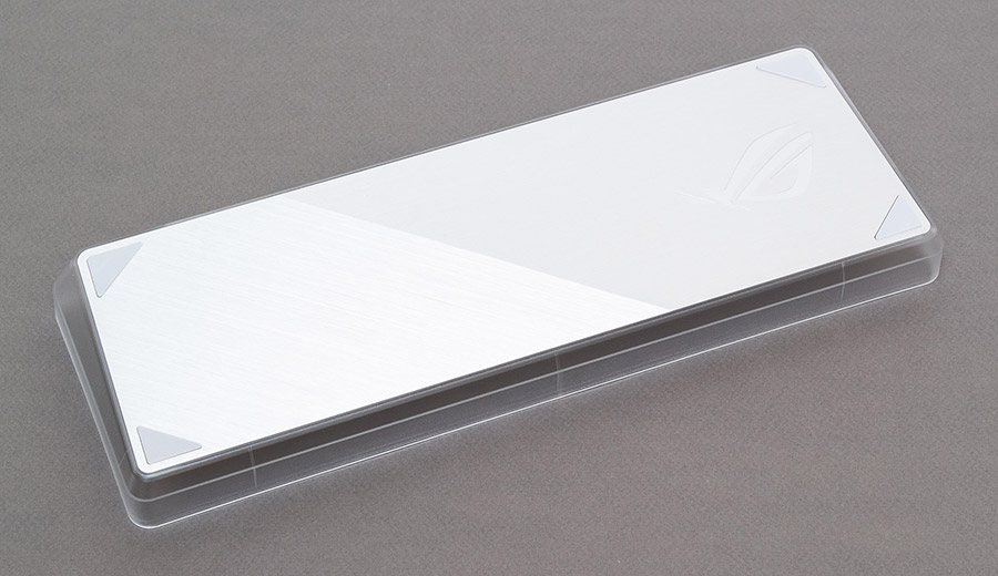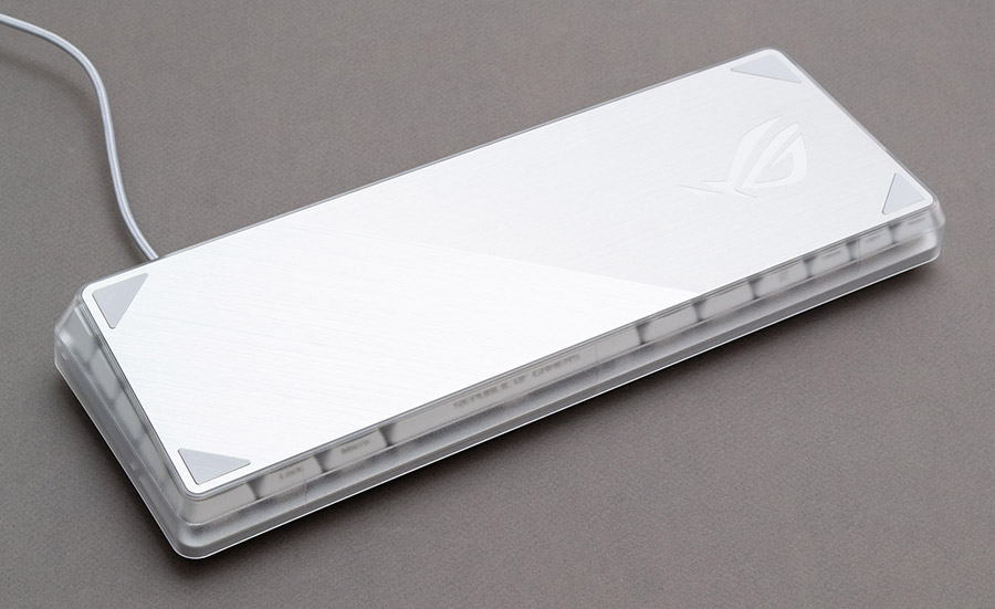 Ще один цікавий аксесуар, який був і в попередній версії ROG Falchion, це кришка з полікарбонату. Вона прозора по боках. Всередині неї наклеєно гумову підкладку. З зовнішньої сторони приклеєна металева пластина з чотирма трикутними ніжками по кутах. Вага складає 143 грами.