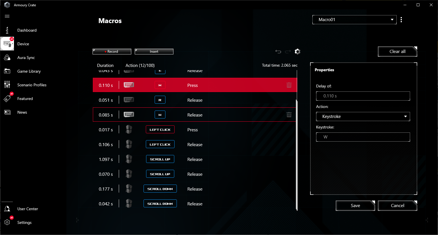 Апаратні можливості клавіатури широкі й дозволяють нормально використовувати її без програмного забезпечення. Багато профілів пам’яті та можливість запису макросів наживо робить цей пристрій самодостатнім. Але якщо знадобиться індивідуально налаштувати підсвітку — там без ПЗ вже не обійтись. Добре, що Armoury Crate покращується з часом.