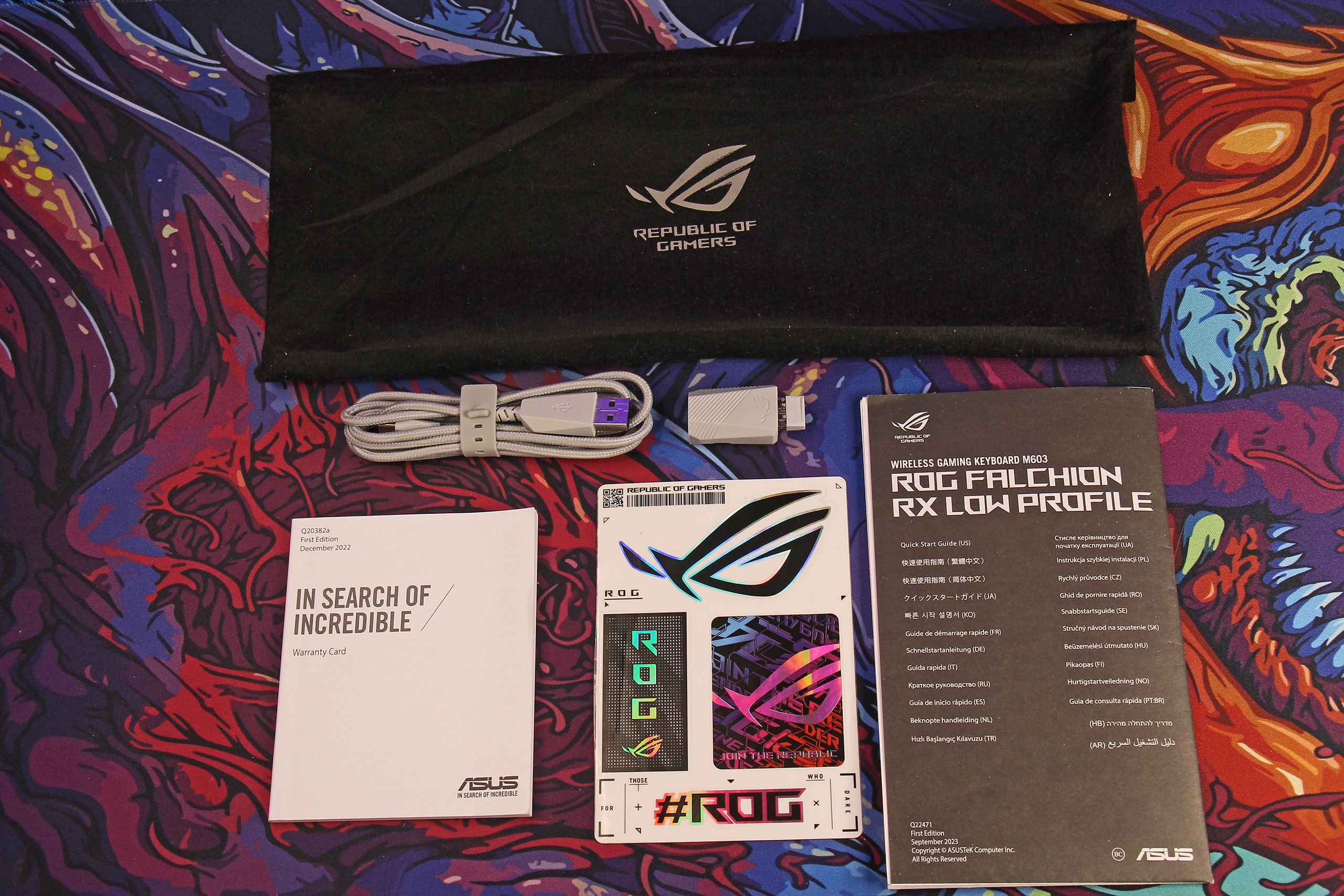 ASUS ROG Falchion RX Low Profile постачається в типовій для бренду ROG чорно-червоній коробці з зображенням клавіатури. Всередині все акуратно запаковано та надійно захищено від пошкоджень при транспортуванні.