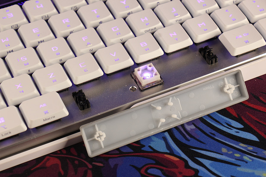 Окремо варто відзначити роботу стабілізаторів на довгих клавішах. Вони попередньо змащені, що забезпечує плавний хід без дратівливого деренчання. Це особливо помітно на клавіші пробілу, яка часто є проблемною зоною в багатьох клавіатурах. Звісно, поміняти їх не вийде, але з нульовим потенціалом всієї іншої кастомізації це вже не дивує і не може вважатися за недолік.