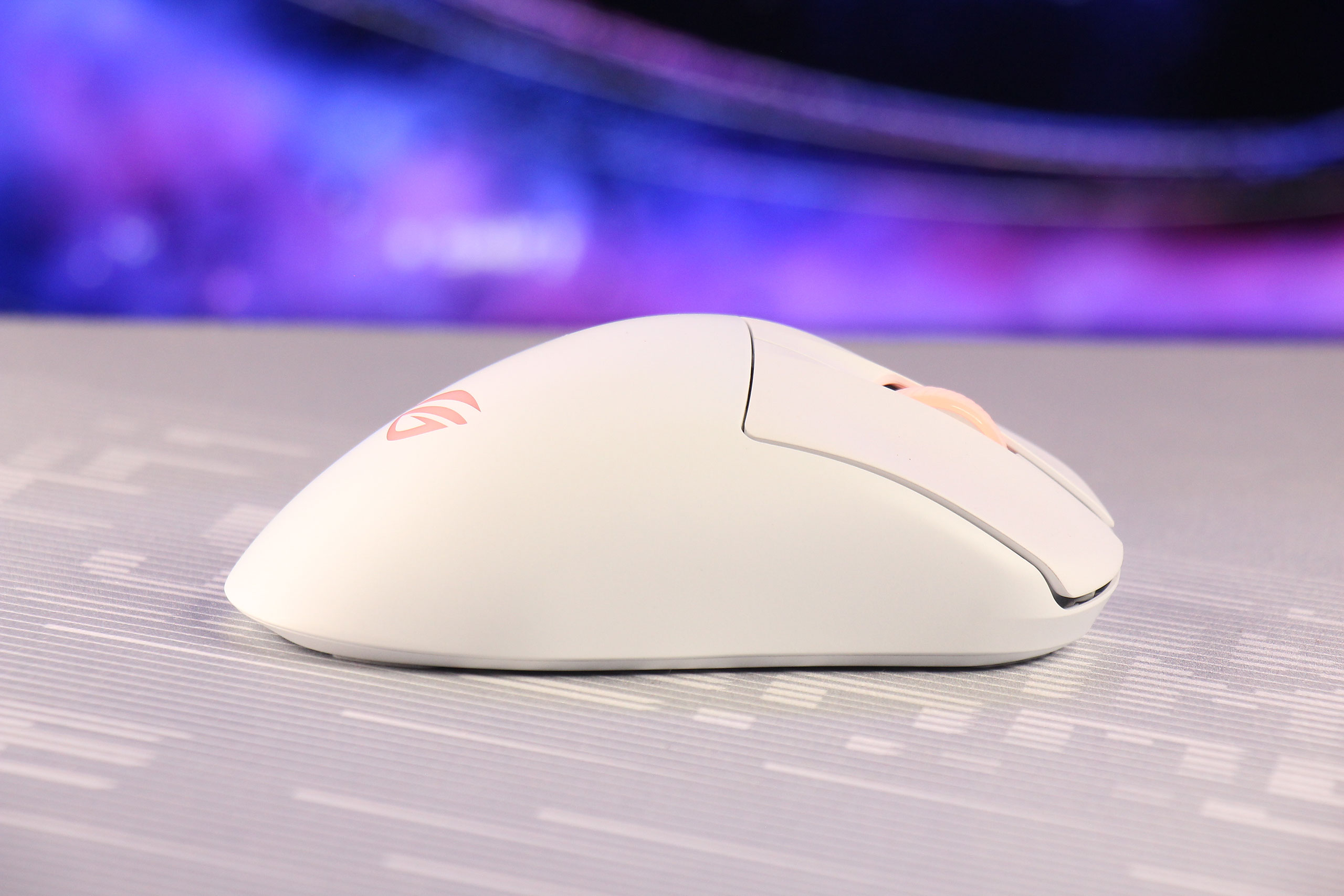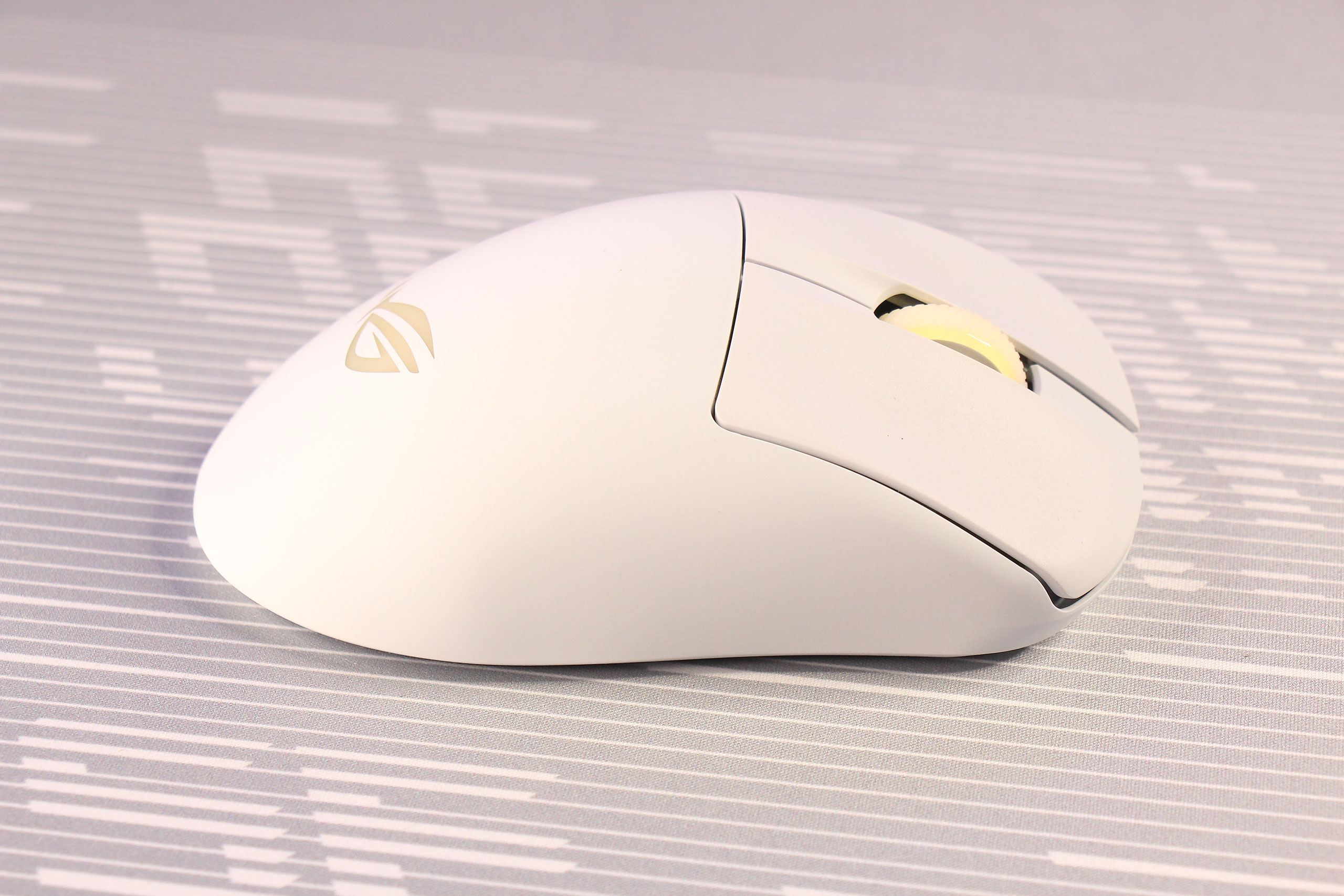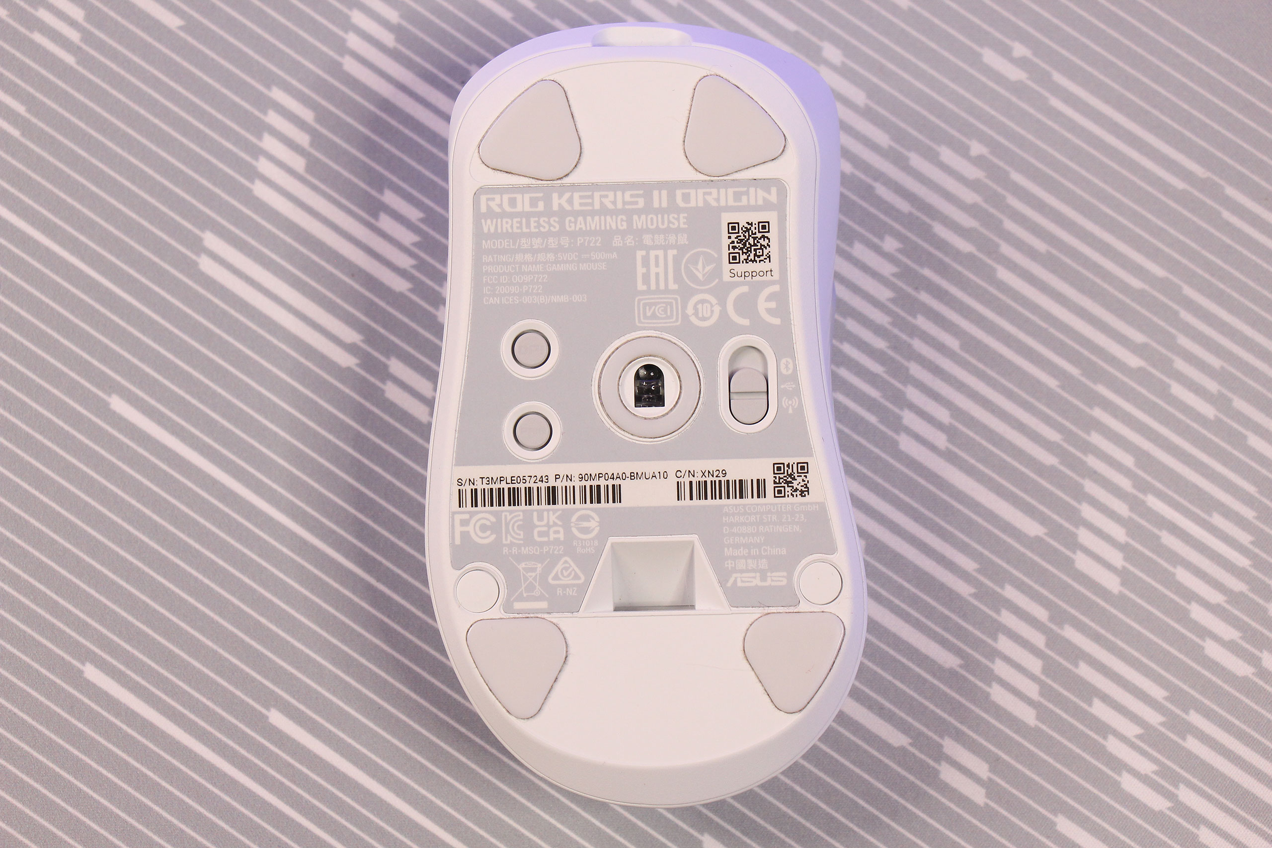 ASUS ROG Keris II Origin при першому знайомстві відчувається важчою за свого попередника Ace, бо так це і є, але 65 грамів — це все ще територія легких мишей. Додаткові 11 грамів пішли на реалізацію ключової особливості у вигляді системи гарячої заміни перемикачів, а також розширеної RGB-підсвітки. Корпус має гладку поверхню типу «шовковистої шкаралупи», що відрізняється від текстурованого покриття Ace. Основні кнопки виконані з міцного PBT-пластику, що забезпечує приємні тактильні відчуття та довговічність.