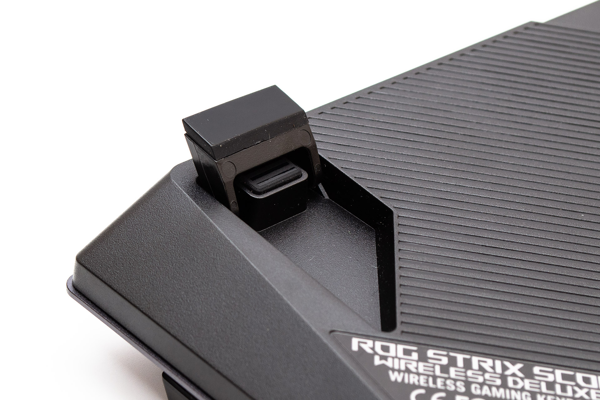 ASUS ROG Strix Scope RX TKL Wireless Deluxe має ряд незаперечних переваг, які стають зрозумілими одразу, як дістаєш її з коробки. Від попередніх продуктів цієї серії збереглась вдала та лаконічна форма корпусу, значна міцність завдяки товстій алюмінієвій формі верхньої панелі, зручна магнітна підставка під долоні, чіпкі ніжки зі спеціальної гуми. І все це при гарному зовнішньому дизайні. Клавіатури формату TKL в принципі призначені для гравців, яким потрібно більше вільного місця під мишу. Менший розмір внаслідок відсутності цифрового блоку клавіш дозволяє не розставляти руки занадто далеко одна від одної, що зменшує рівень втоми користувача. А враховуючи, що пристрій тепер не обмежений дротом, його взагалі можна пересувати й ставити на столі як завгодно, та і не тільки на столі. Грати тепер можна хоч на проєкторі, хоч на телевізорі з будь-якої точки кімнати. А ще можна керувати з клавіатури трьома Bluetooth пристроями, тобто використовувати її з ноутбуком чи Smart TV одночасно, рухом перемикача.