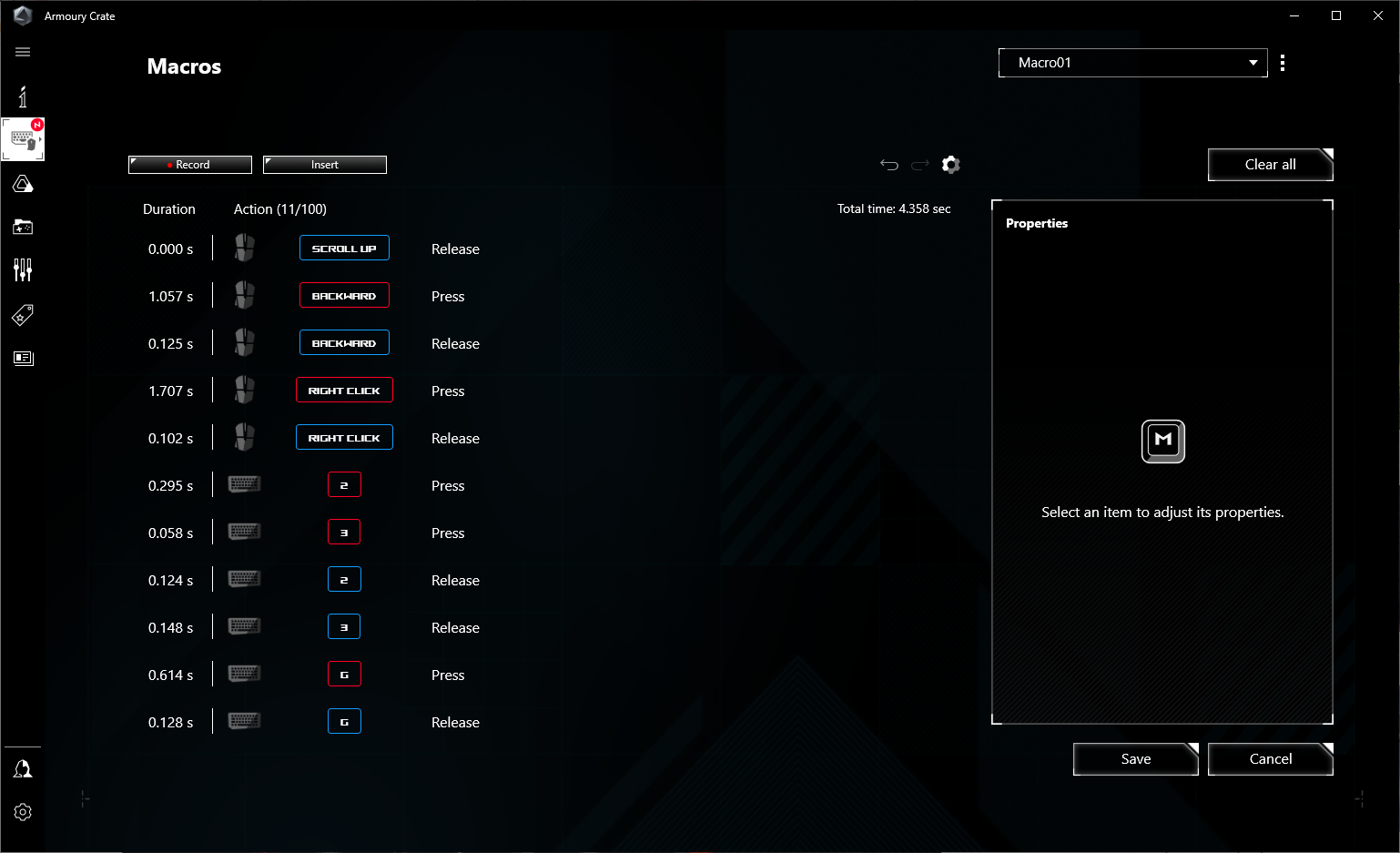 Чудова апаратна платформа цієї клавіатури з великим обсягом пам'яті та значною кількістю профілів дозволяє записувати макрокоманди без використання застосунку. І на сьогодні це рідкість. До програмного забезпечення Armoury Crate у мене як завжди є претензії по оптимізації та інтерфейсу, але все одно воно стає кращим з часом і комусь може подобатись.