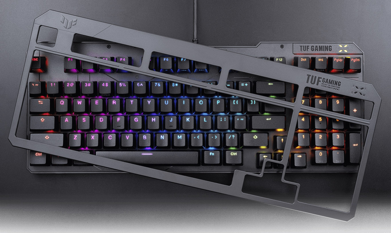Цікавим рішенням є знімна верхня кришка клавіатури. Це не тільки дозволяє змінювати зовнішній вигляд пристрою, перетворюючи конструкцію на «скелетон», але й значно полегшує процес чищення. На плейті, що стає верхньою площиною клавіатури при знятій кришці нанесено декоративний візерунок у вигляді ліній та символів (в межах стилістики TUF Gaming), що додає клавіатурі певної індивідуальності та більшої відповідності статусу ігрового продукту.