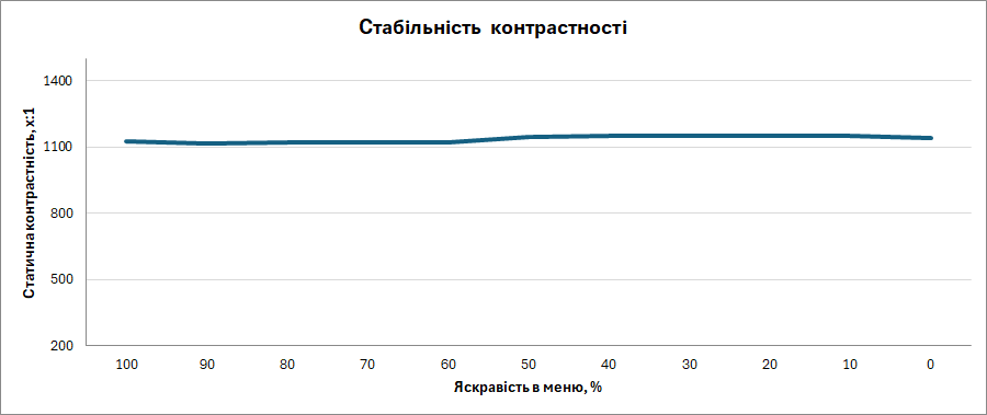 Щодо статичної контрастності, то ZenScreen MB166CR показав результати значно краще специфікацій — 1:1136, причому, значення майже не залежить від налаштувань яскравості.