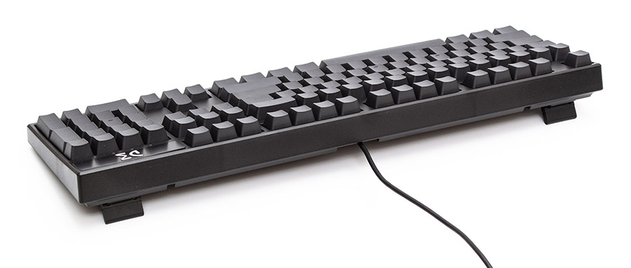 Висота клавіатури у профіль по задньому ряду клавіш зі складеними ніжками становить 39 мм. З розкладеними ніжками висота заднього ряду зростає до 54 мм. Тут використовується OEM-профіль клавіш.