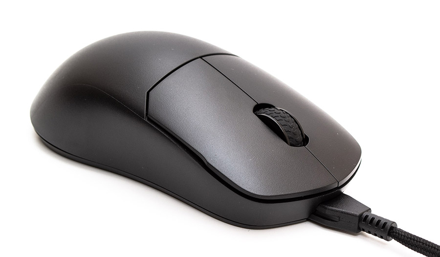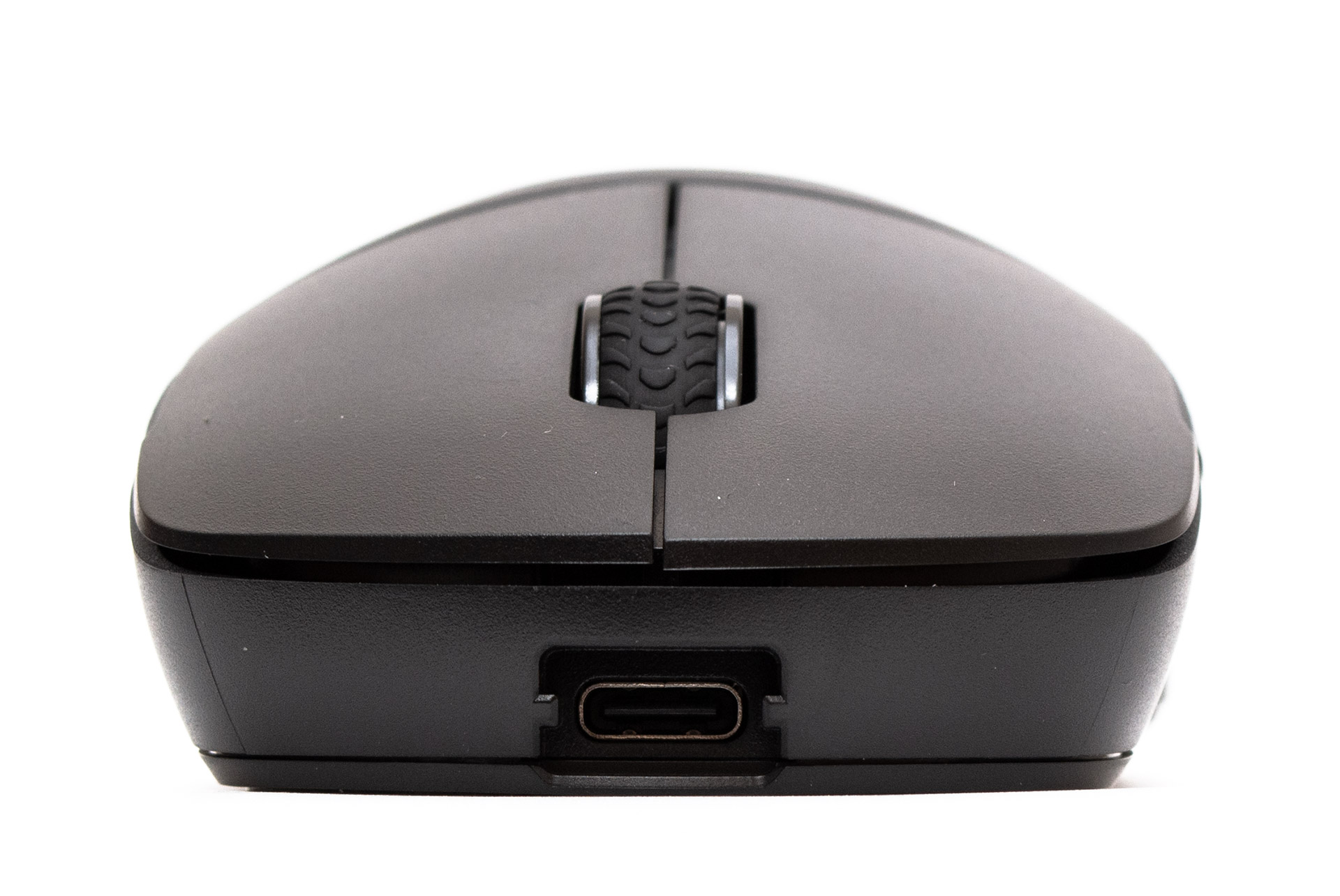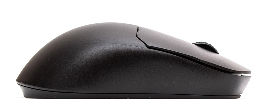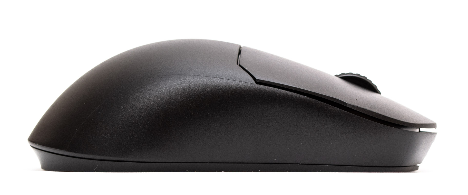 Ергономіка цієї миші є універсальною. Це не зовсім класична симетрія з піднятою задньою частиною корпусу, яка тим не менш зручно лежить у руці середнього чи великого розміру в хватах «пальцями» або «кігтем». Вага в 88 грамів добре розподілена і відцентрована. Миша не відчувається ні занадто легкою, ні заважкою. Є певні маленькі люфти у корпусі та клавішах, але нічого серйозного, як то кажуть. Поверхня добре протистоїть забрудненню та швидко очищується. Миша не випадає ні з сухих, ні з вологих долонь. Основні клавіші доволі гучні, проте працюють чітко. Додаткові та середня кнопки просто нормальні. Окремо варто відзначити колесо прокрутки — воно тут вийшло дуже вдалим, з гарною тактильною віддачею та тихим і легким обертанням. Кабель міг би бути й кращим в плані гнучкості, але враховуючи, що це все ж бездротова миша, питань до нього немає. Ніжки ковзають с середнім рівнем супротиву, а маса миші сприяє більшій інерції корпусу при зміні напрямку руху. Добре і те, що у комплекті є додаткові змінні ніжки.