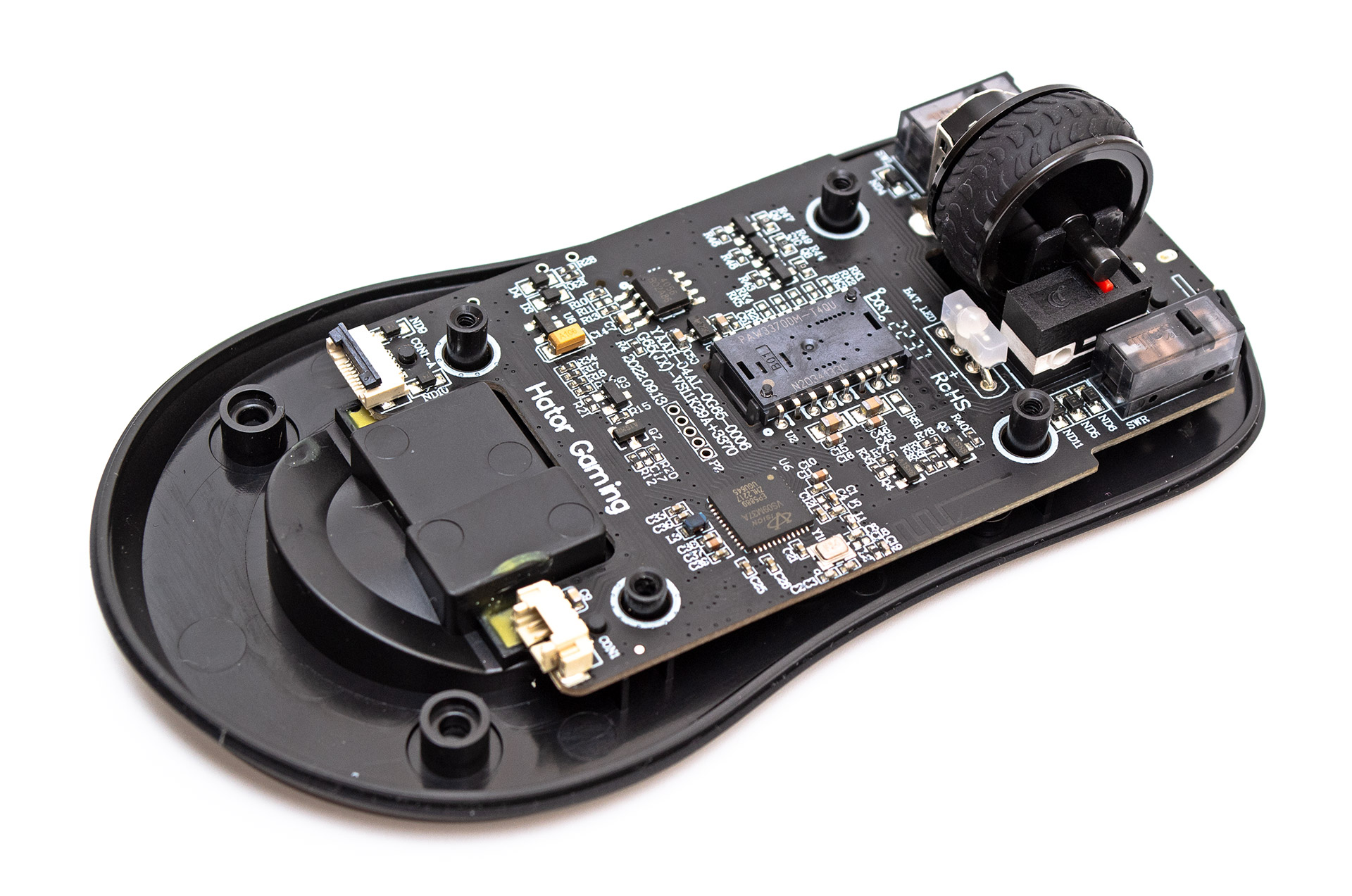 Встановлений тут оптичний сенсор з невидимою інфрачервоною підсвіткою має назву PixArt PAW3370DM-T4QU. Ще два роки тому це був найкращий у лінійці датчик, який поєднував у собі високу точність, швидкість та економічність у бездротовому використанні. Зараз з’явилися ще кращі моделі, але й цей сенсор не став від того гіршим і є достойним вибором для сучасного бездротового ігрового маніпулятора. З недоліків конкретно у цій збірці можна відмітити висоту відриву в районі 2 мм та помітний рівень згладжування, який фіксується програмно. Хоча це може бути питання більшою мірою до бездротового зв’язку, ніж до самого датчика.