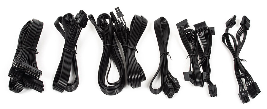 Усі кабелі виконані у вигляді шлейфів із чорною ізоляцією, довжина кабелів достатня для великих корпусів.