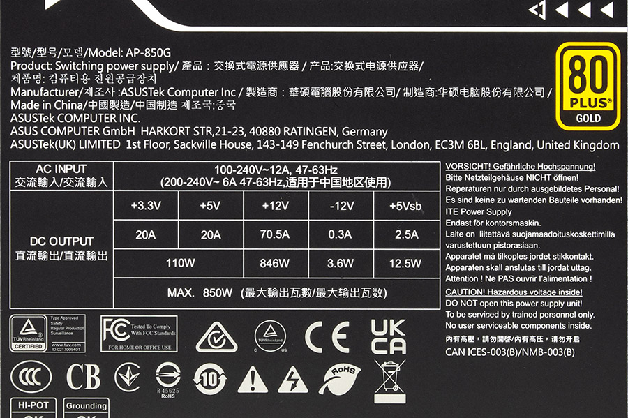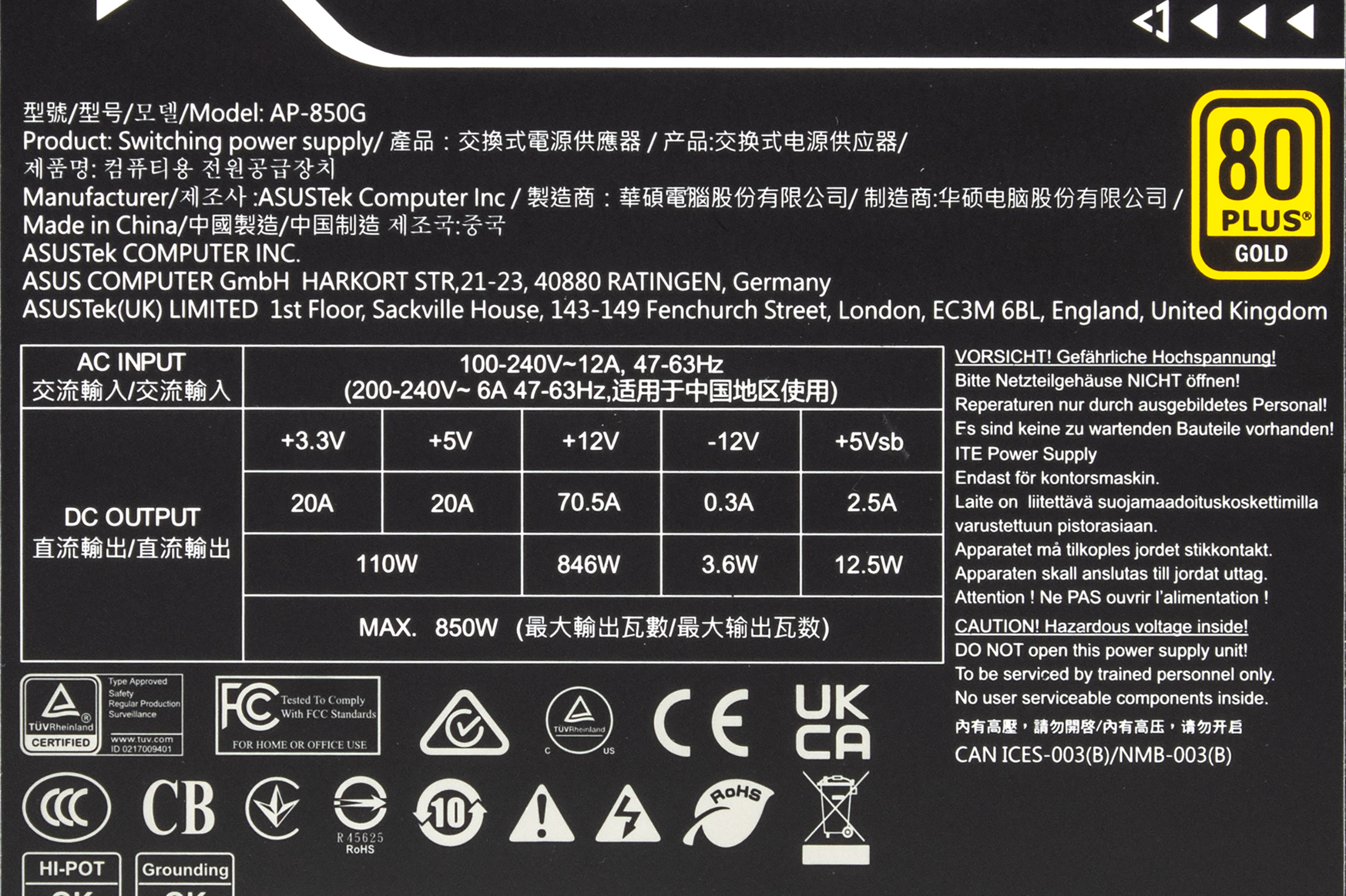 Протестований ASUS Prime AP-850G видає заявлену потужність, має непогану стабільність напруг, побудований за сучасною схемотехнікою і поставляється з гарним комплектом кабелів. Щоправда, у ньому використовується бюджетна елементна база, але навіть так виробник дає гарантію вісім років. Очевидно, причина в низькому нагріванні компонентів, що веде до збільшення терміну служби встановлених конденсаторів. Крім того, через конструктивні особливості решітки вентилятора на максимальній потужності проявляється неприємний шум, але навряд чи хтось буде встановлювати собі блок без запасу потужності, а при навантаженні до 500 Вт він взагалі досить тихий. Вирішальним фактором при покупці вже буде ціна та наявність порівняно з конкурентами. Але це за умови, що він таки дістанеться роздрібного ринку, поки що він офіційно доступний системним інтеграторам для складання готових ПК.