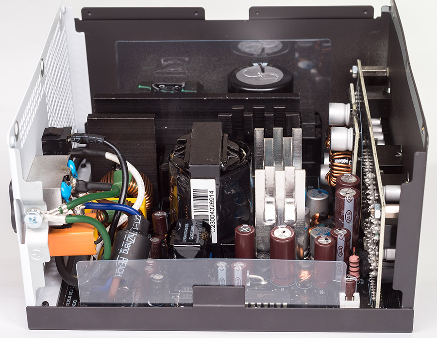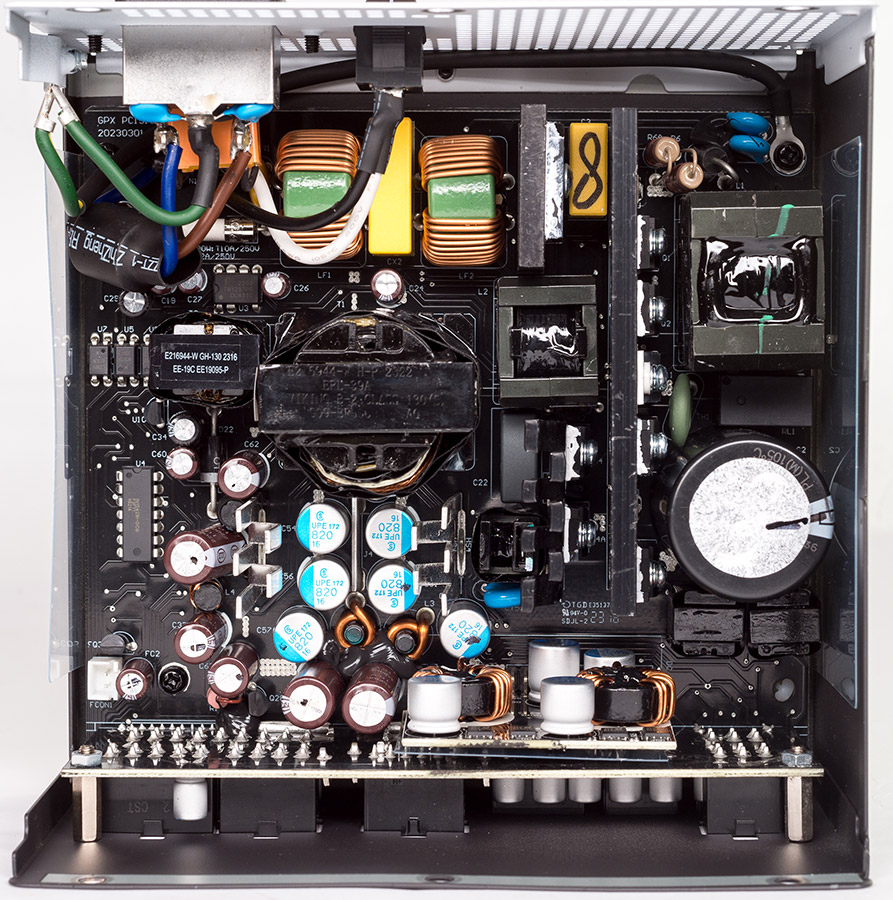 Блок побудований на сучасній платформі з активним коректором коефіцієнта потужності (APFC) з широким діапазоном вхідної напруги 100–240 В, силовим резонансним LLC-перетворювачем та з синхронним випрямлячем по лінії +12 В, а також DC/DC-перетворювачами для ліній +5 В та +3,3 В.