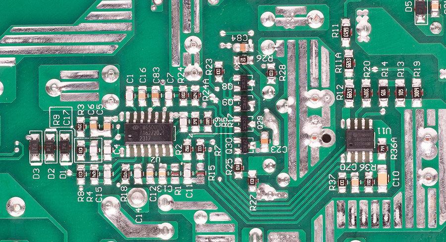 Керує коректором мікросхема CM6500UNX. Силова частина складається з двох транзисторів, включених паралельно, і діода (тип силових елементів розглянути не вдалося).