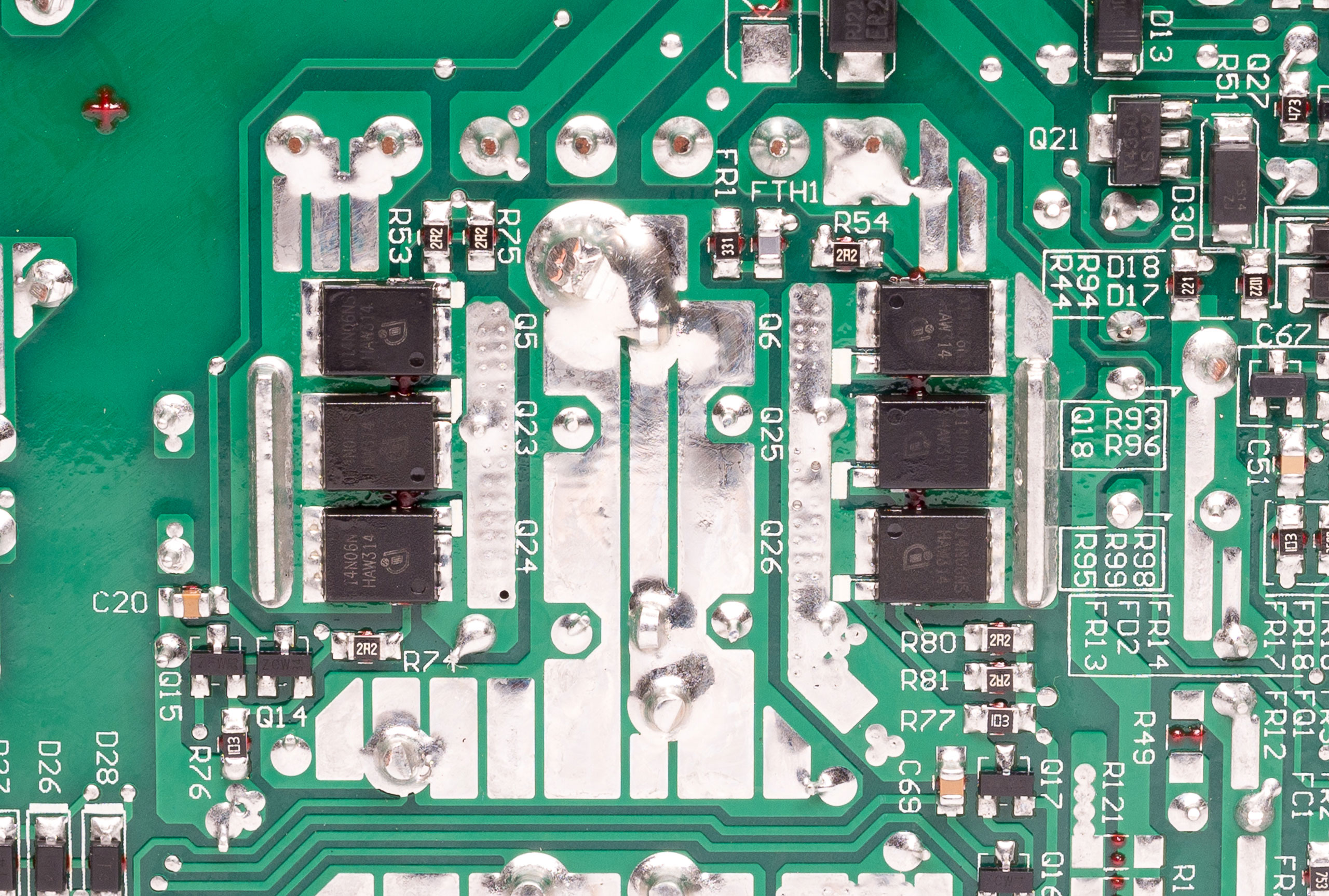 Синхронний випрямляч виконаний на шести транзисторах IPB014N06N (180 А, 60, 1,4 мОм), які розпаяні на основній платі. За їхнє охолодження відповідають дві пластини, впаяні поруч.