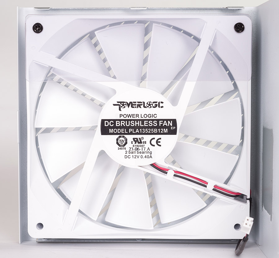 За охолодження компонентів блоку відповідає вентилятор Power Logic типорозміру 135х135х25 мм з маркуванням PLA13525B12M (12 В, 0,4 A), двоконтактним підключенням та подвійною кульковою вальницею. Вентилятор керується автоматично залежно від навантаження та температури силових компонентів.
