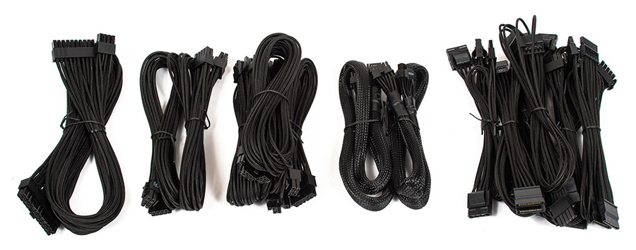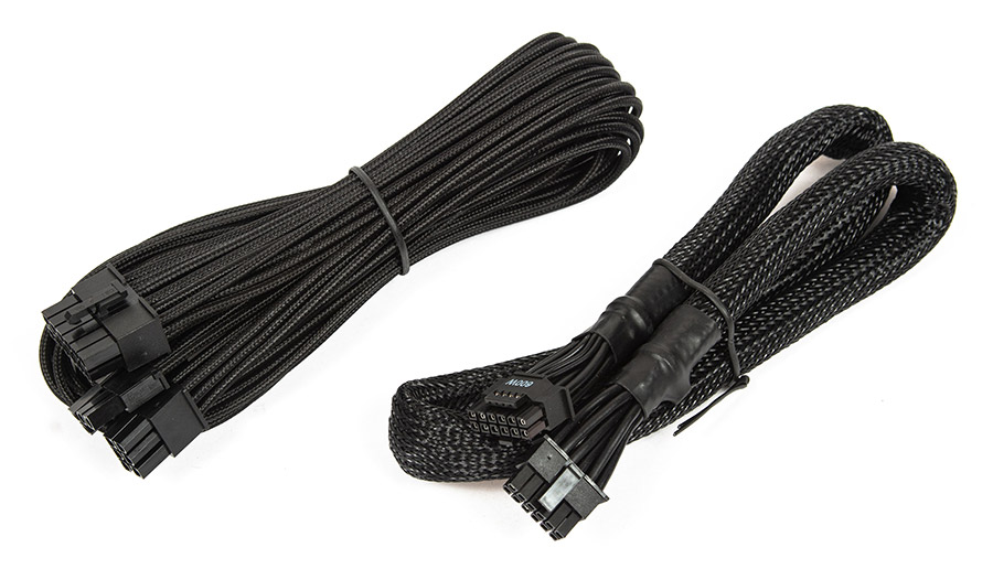 Усі кабелі виконані з проводів в індивідуальному тканинному обплетенні чорного кольору, тільки пара кабелів 12VHPWR виконані у звичайному нейлоновому обплетенні.
