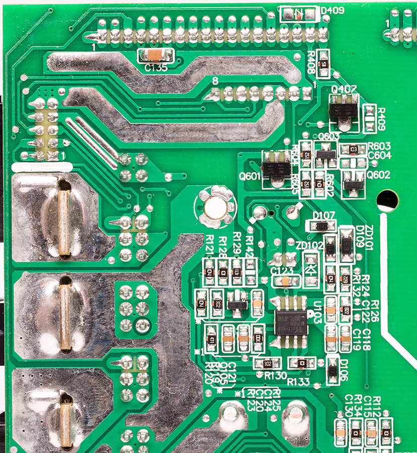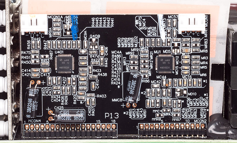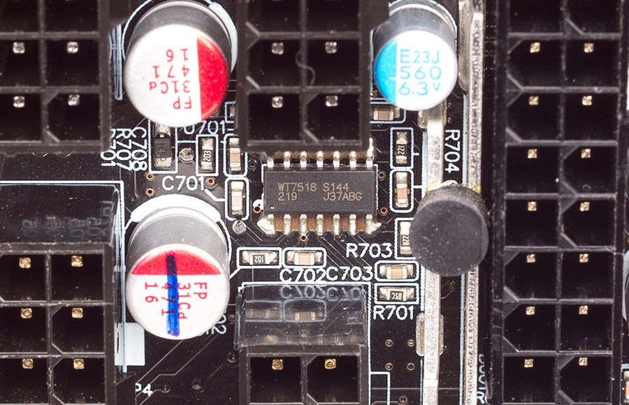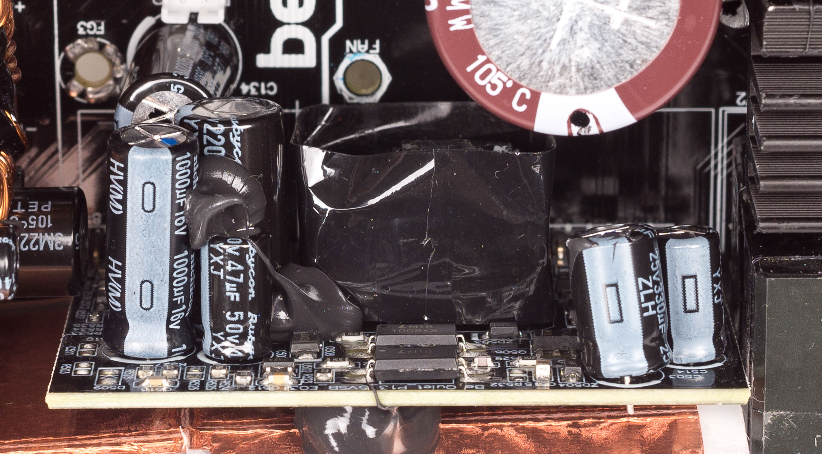Перетворювач живлення режиму очікування виконаний на окремій невеликій платі, в його обв'язці є конденсатори Rubycon і Nichicon.