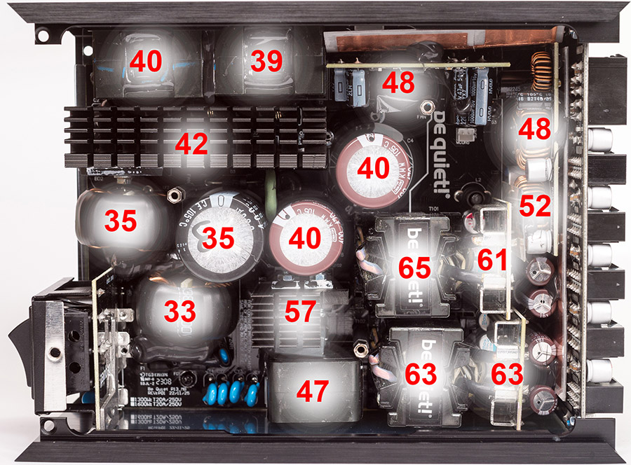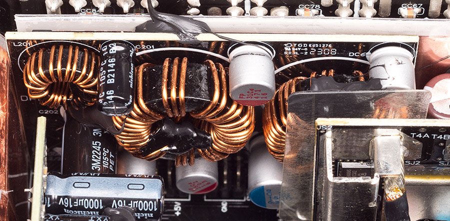 Блок має активний коректор коефіцієнта потужності (APFC) з широким діапазоном вхідної напруги 115–240 В, мостовий резонансний LLC-перетворювач по лінії +12 В з синхронним випрямлячем і DC/DC-перетворювачі для ліній +5 В та +3,3 В. З нововведень — цифрова система управління як APFC, так і силовим перетворювачем лінії +12 В з синхронним випрямлячем. Монтаж блоку є досить щільним і тип більшості силових компонентів розглянути проблематично.