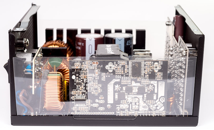 Блок побудований на сучасній платформі з активним коректором коефіцієнта потужності (APFC) з широким діапазоном вхідної напруги 100–240 В, силовим резонансним LLC-перетворювачем по лінії +12 В із синхронним випрямлячем та DC/DC-перетворювачами для ліній +5 В та +3,3 В.
