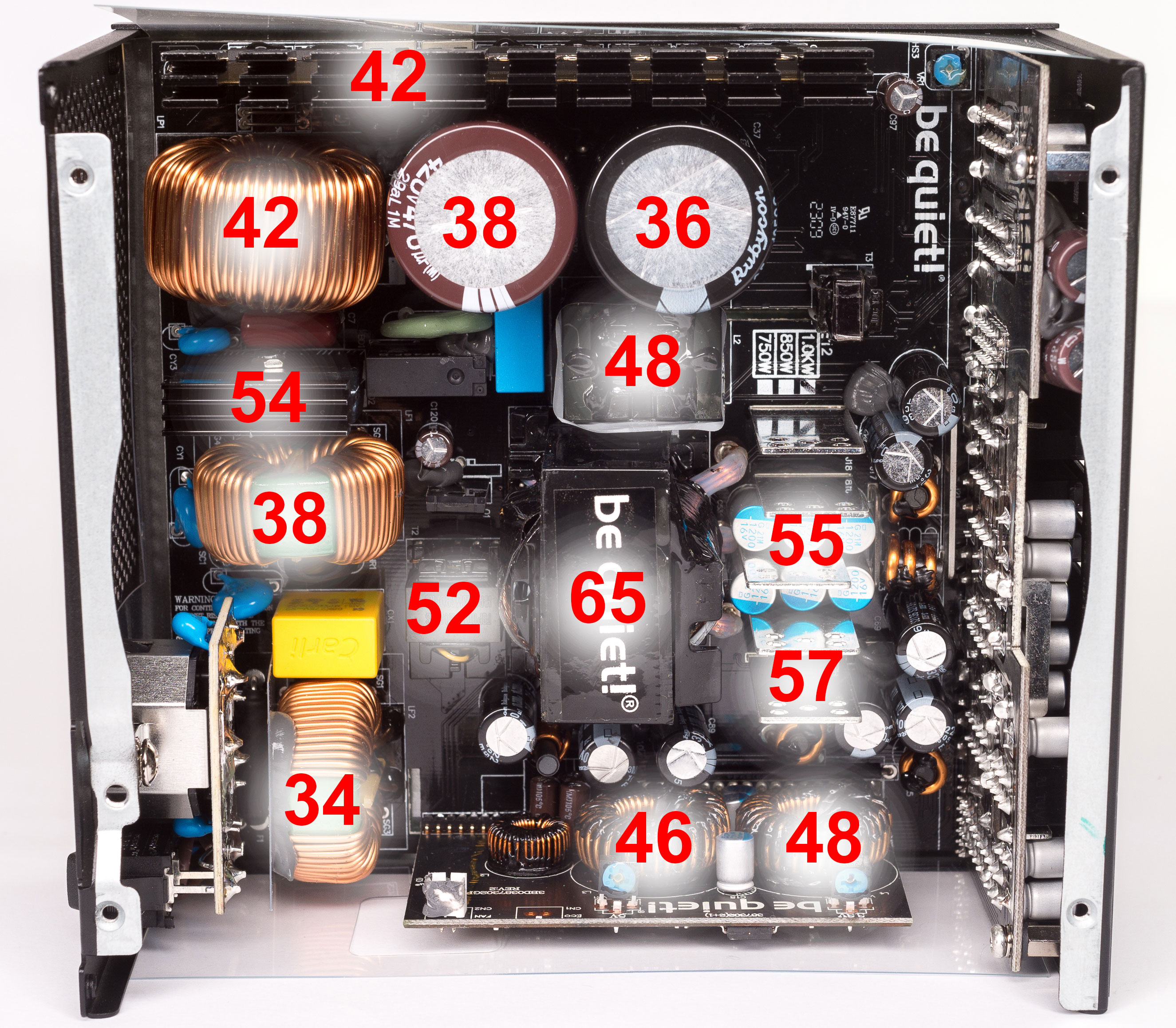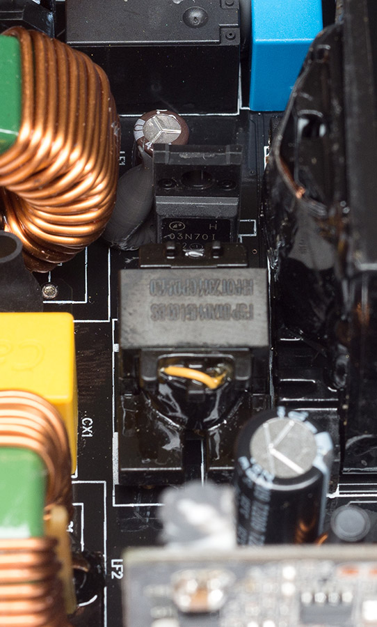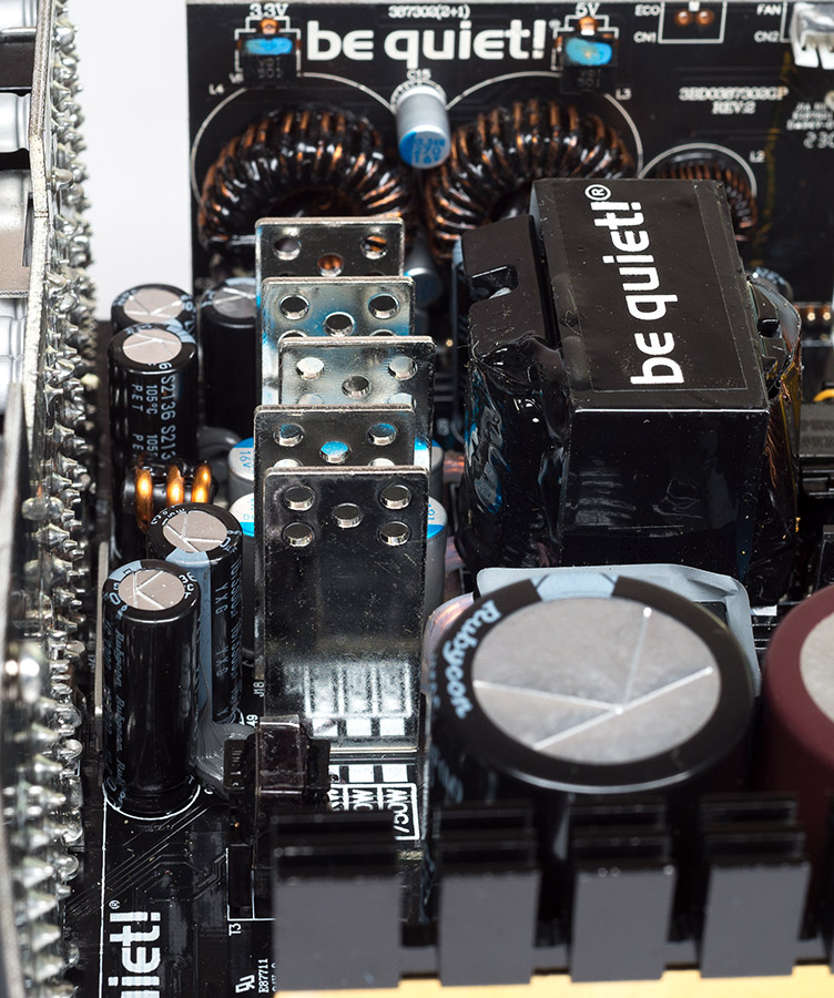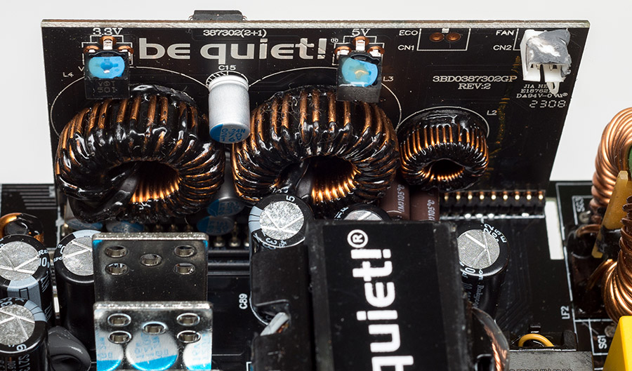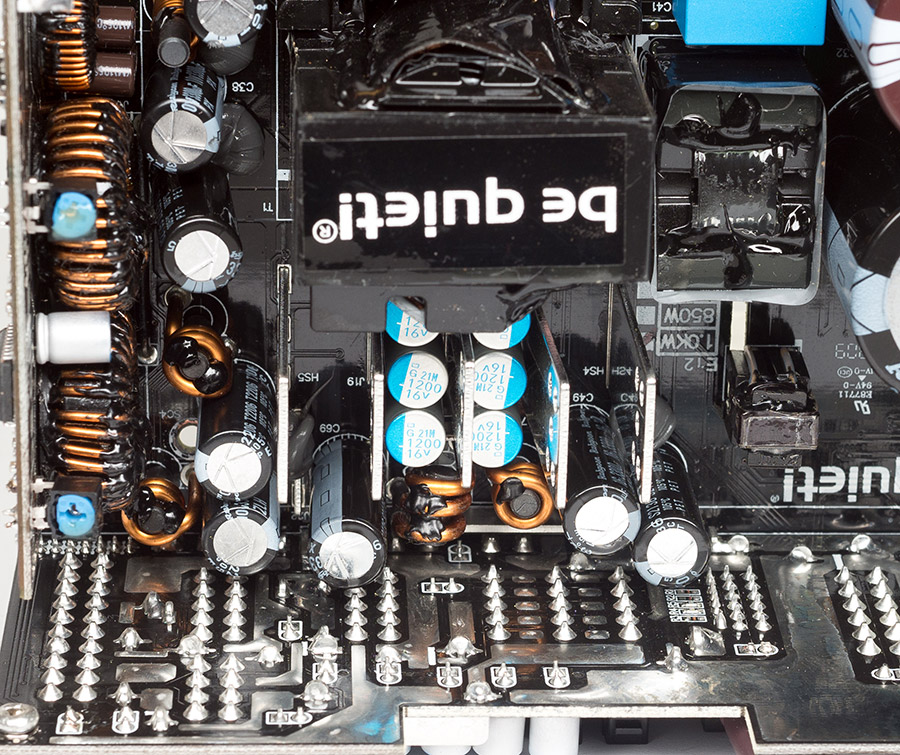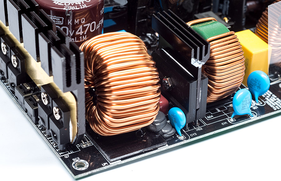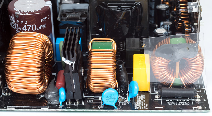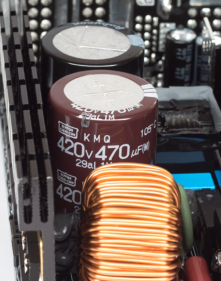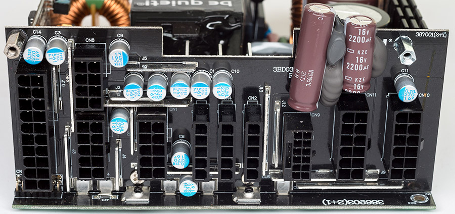 Вихідну напругу +12 В фільтрують шість полімерних конденсатори ємністю 1200 мкФ і напругою 16 В, а також три електролітичні конденсатори ємністю 3300 мкФ і напругою 16 В на 105 °C виробництва Rubycon. Для додаткової фільтрації на платі підключення модульних кабелів встановлені ще сім полімерних конденсаторів ємністю 270 мкФ з робочою напругою 16 В і два електролітичні конденсатори ємністю 3300 мкФ і 2200 мкФ з напругою 16 В на 105 °C виробництва Nippon Chemi.