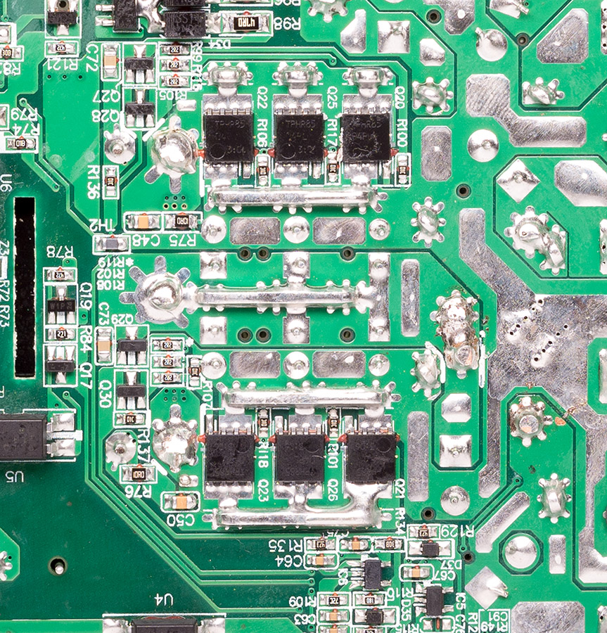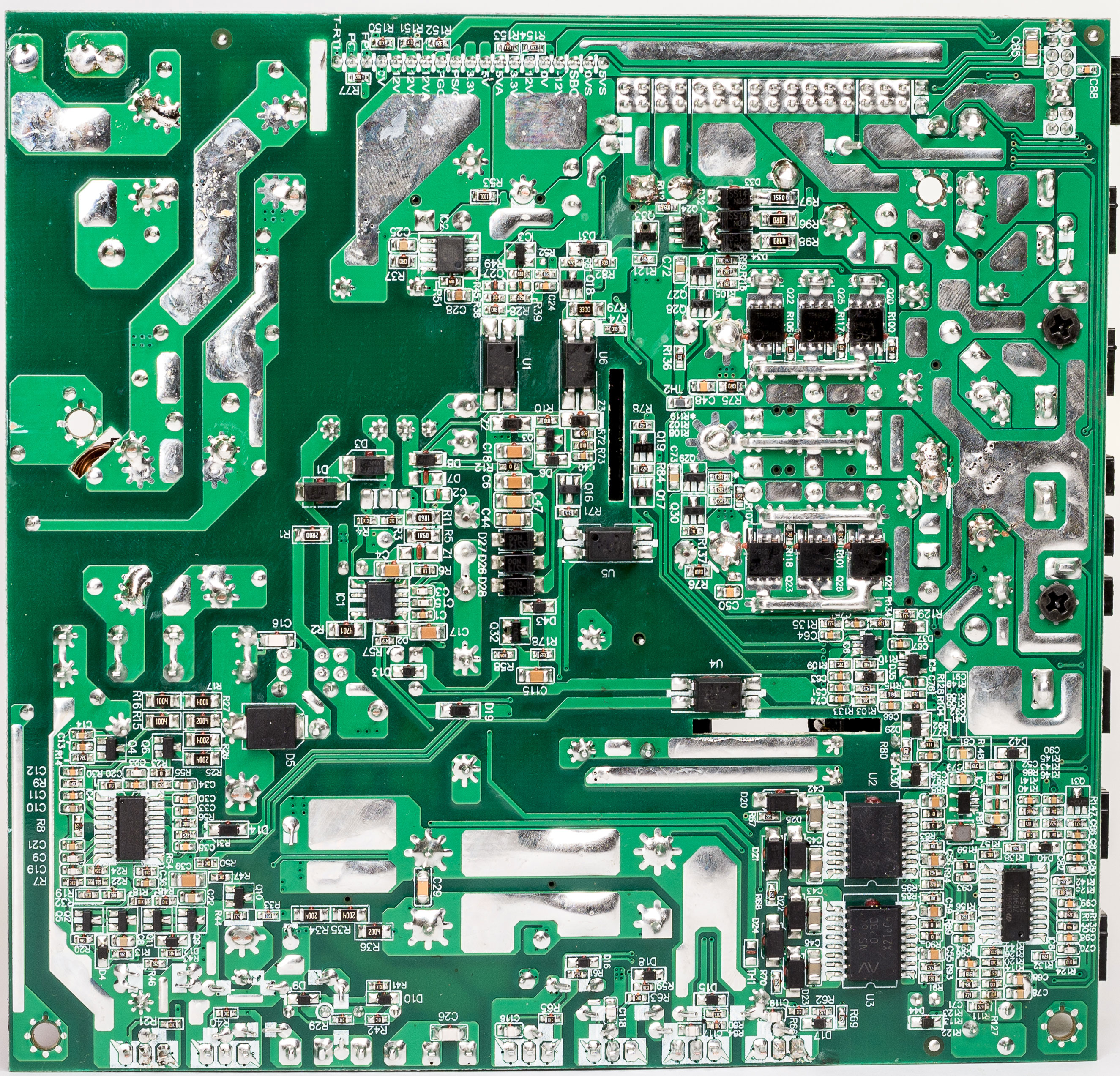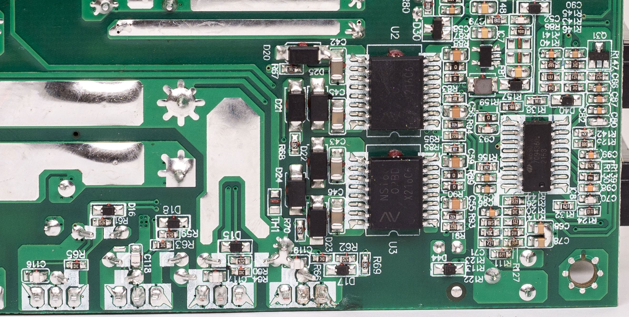 Вхідний випрямляч складається з двох діодних мостів GBJ2506F (25 А, 600 В), включених паралельно, які охолоджуються невеликим окремим радіатором.