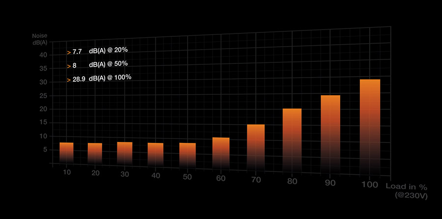 Температури компонентів блоку невисокі, при тестуванні він був досить тихим на тлі інших вентиляторів стенда. У ПК температури й шум можуть бути вищими, все залежатиме від розташування блоку, продувності корпусу і температури в приміщенні.